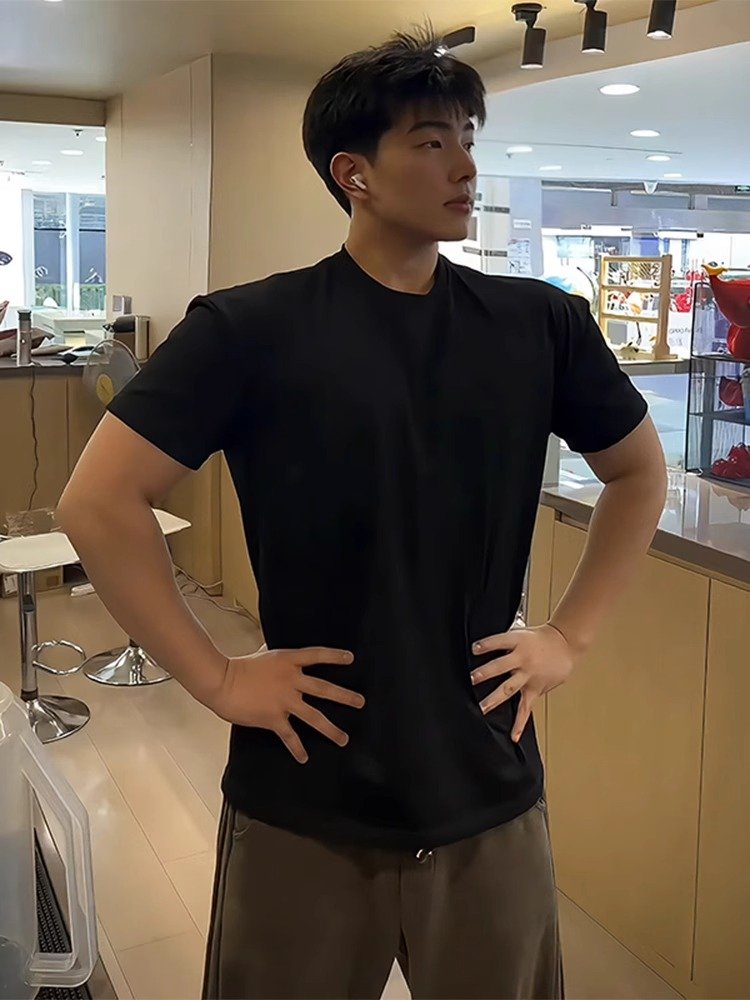 黑色索罗娜凉感t恤男夏季运动速干健身短袖
