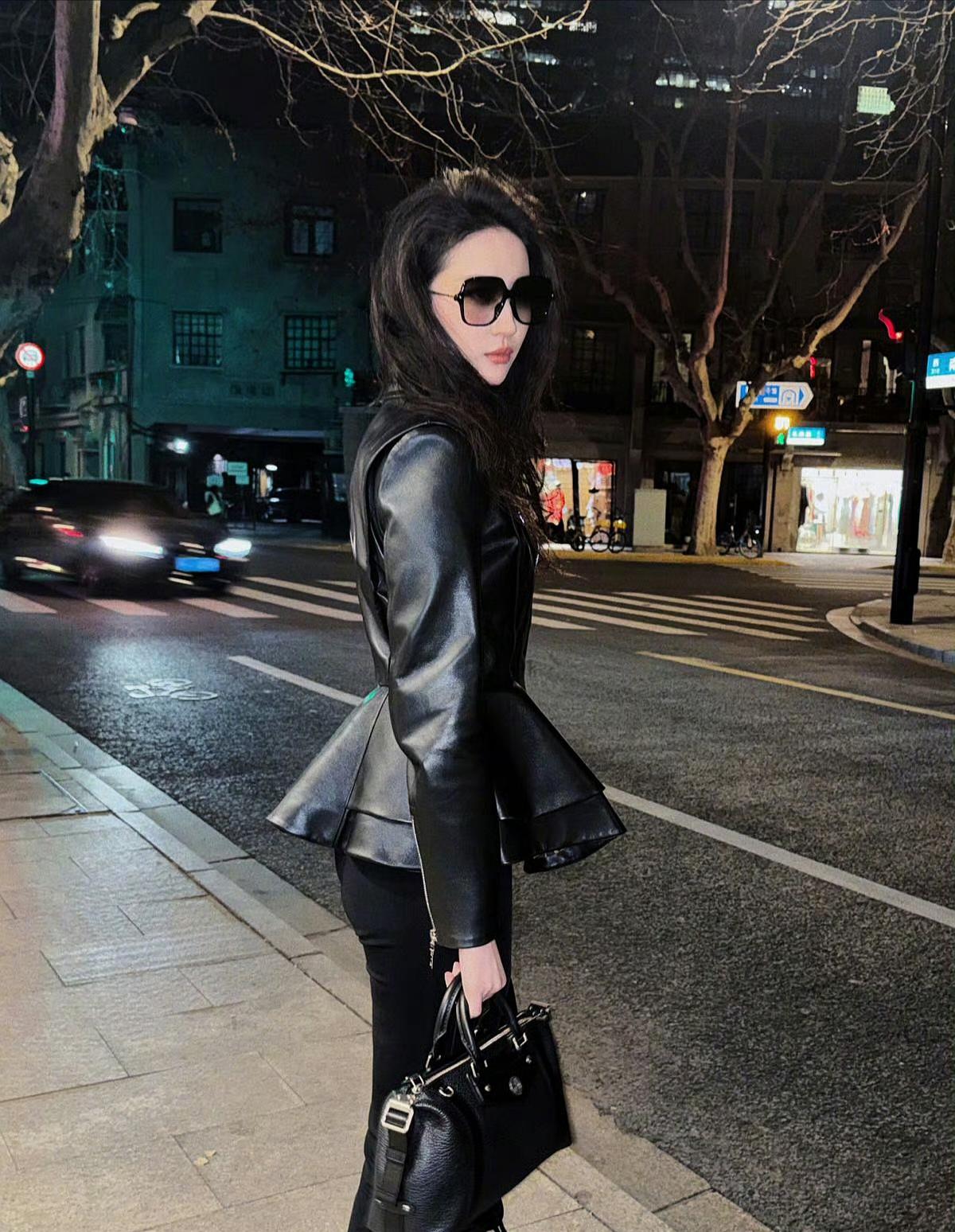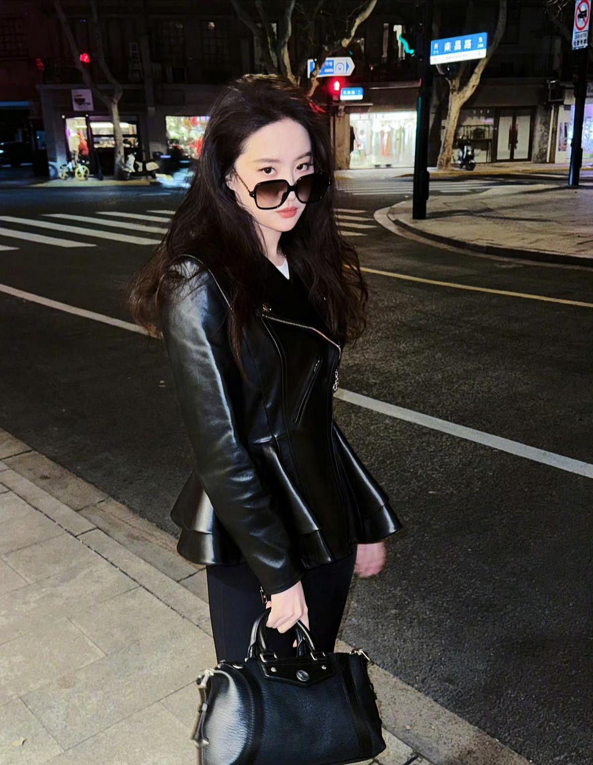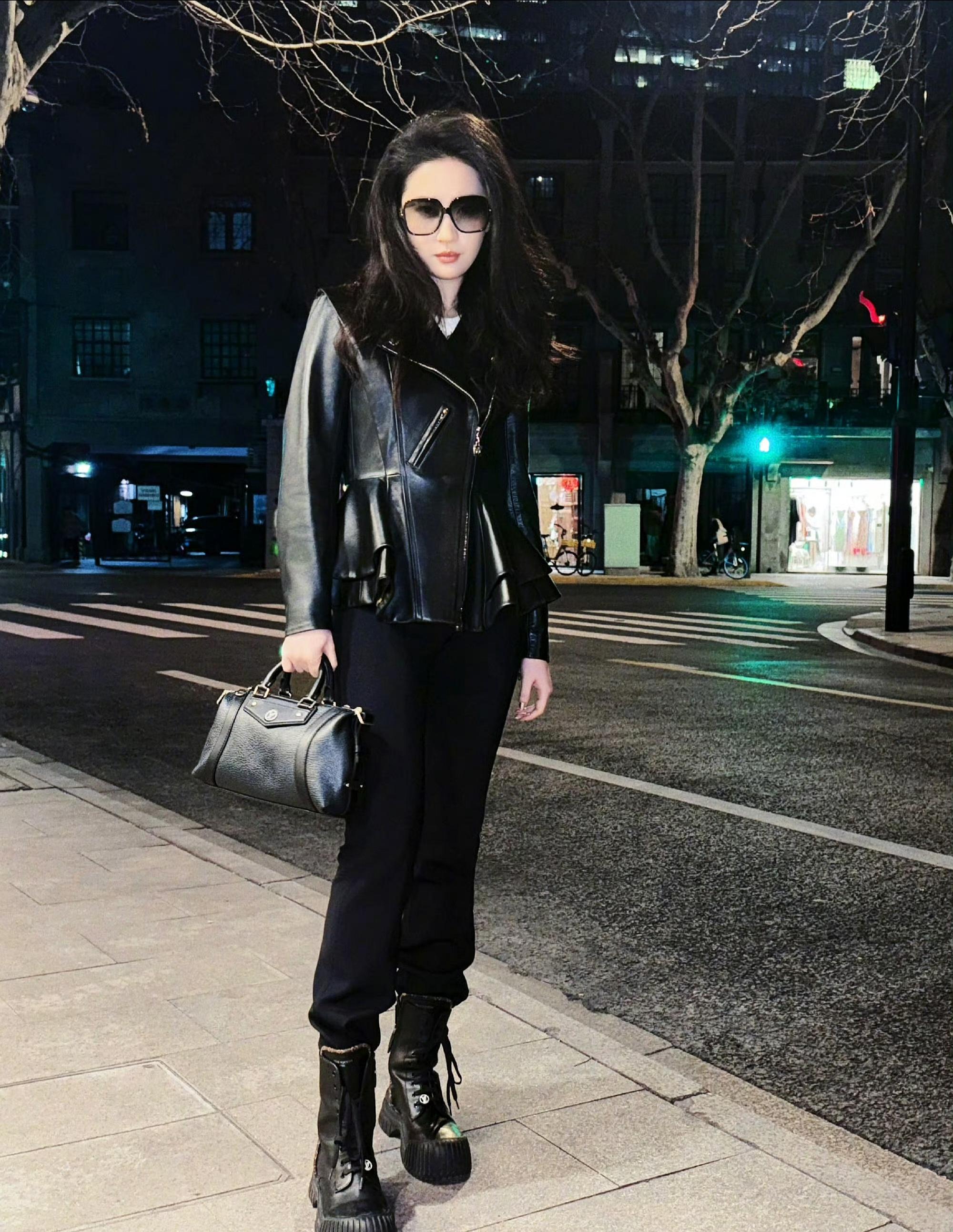 刘亦菲 上海街头夜景机车造型摩登女郎