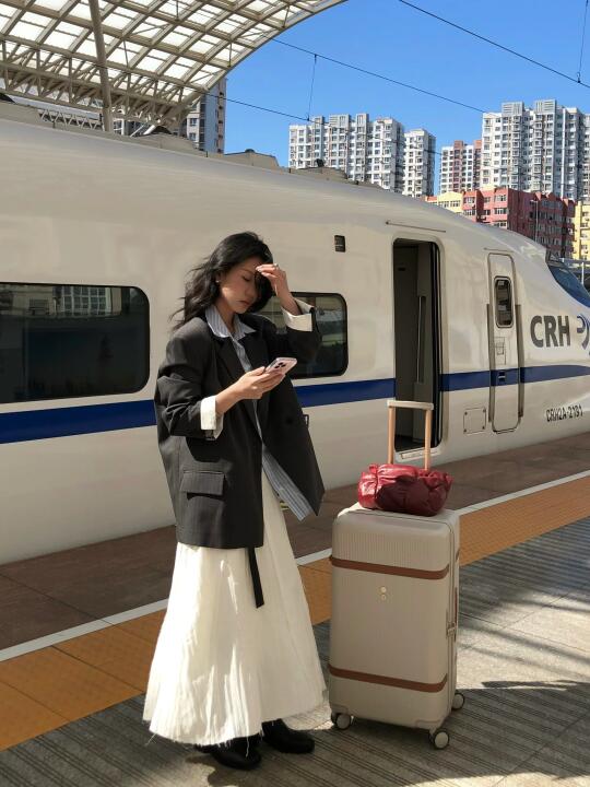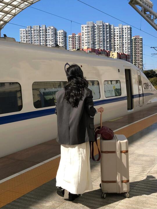 想过春天于是就出发了💭🚄 新行李箱的配色好喜欢! -