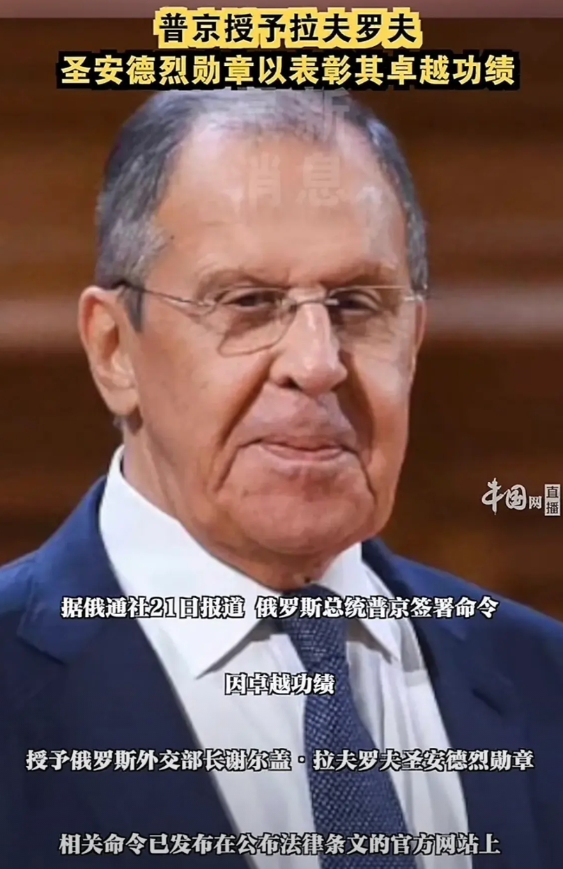 什么情况,拉夫罗夫要退休吗?俄乌战争谈判进入关键时刻,还得拉外长出大力,什么时候和平停火了,再给颁奖不迟。普京这时候给拉外长授圣安德烈勋章,有点奇怪,这个勋章在俄国内是俄乌战争之后第一人,另外普京给白俄总统卢卡申科、印度总理莫迪授过这种勋章。俄乌战争三年多,拉外长在外交上立大功了,军事上格拉西莫夫也立下汗马功劳了,战后应该授勋。