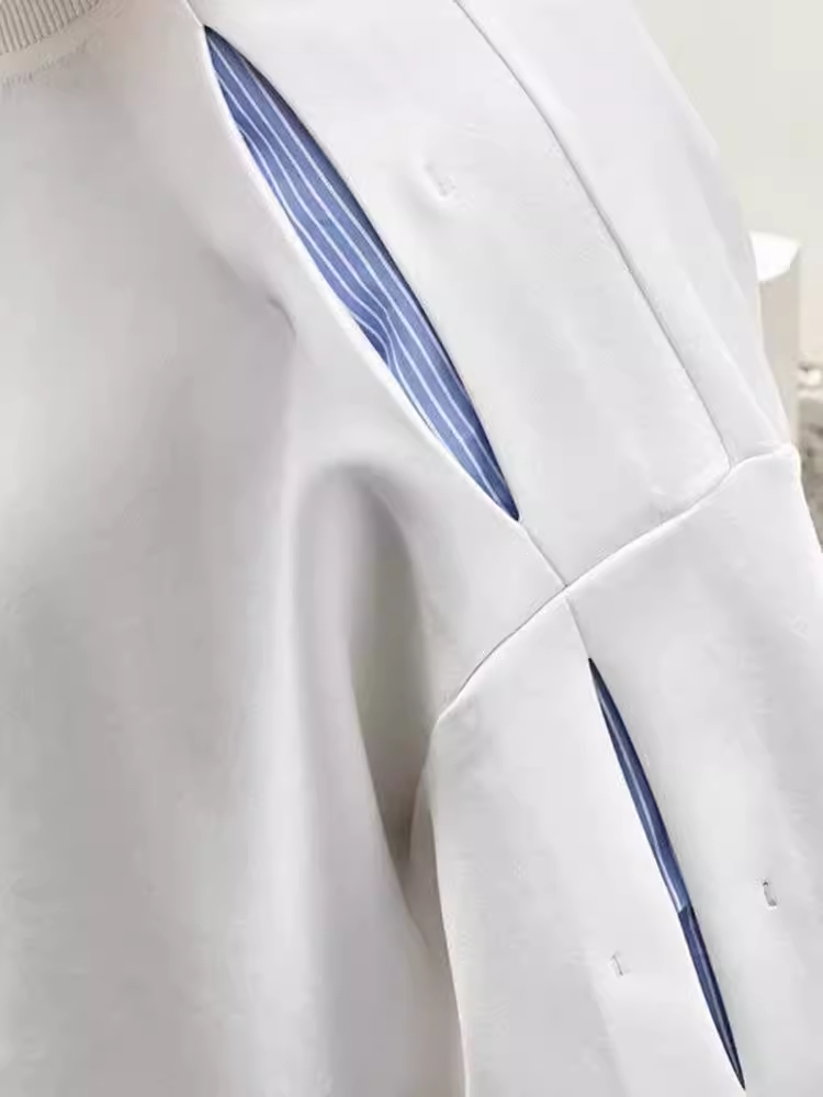 22号穿搭白色条纹解构拼接正肩短袖男美式