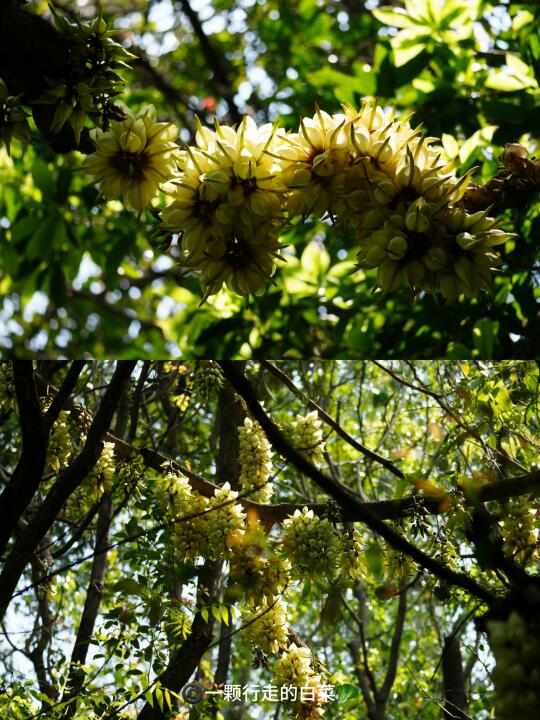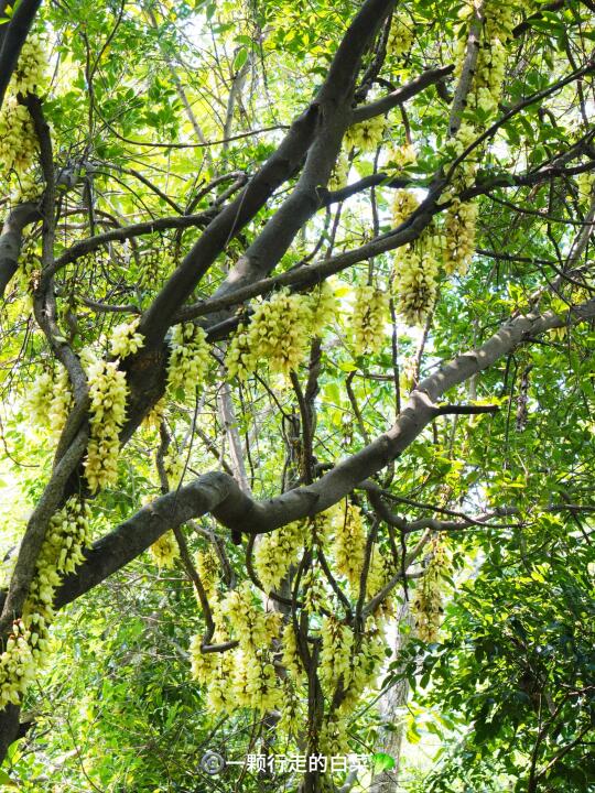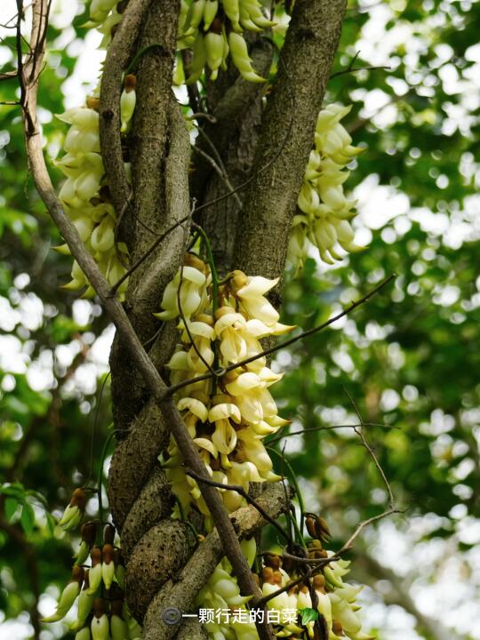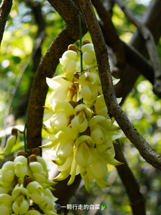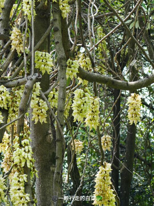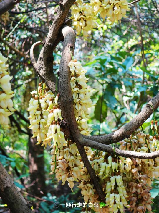 近距离看它的每朵小花,仿佛一只欲展翅高飞的雀鸟,所以它有个可爱的昵称“禾雀花”。它的花朵还会玩变色魔法,初开时玉雪可爱,凋零前渐染蜜黄。