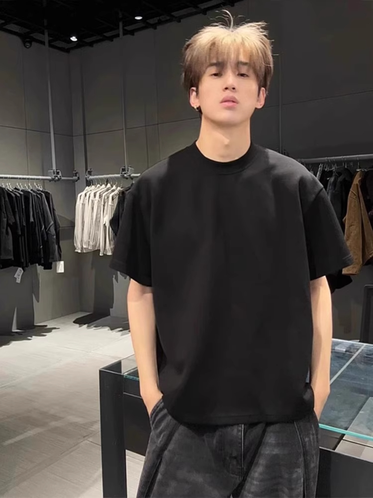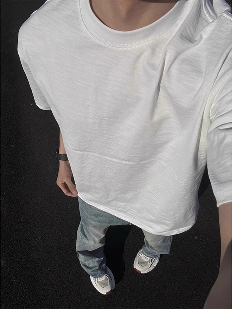 白色莫尔代纯棉t恤男夏季美式高街重磅硬
