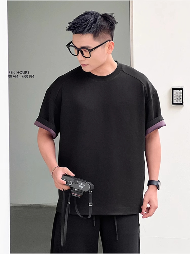 莫代尔双色果冻棉短袖男款夏季凉感透气小领