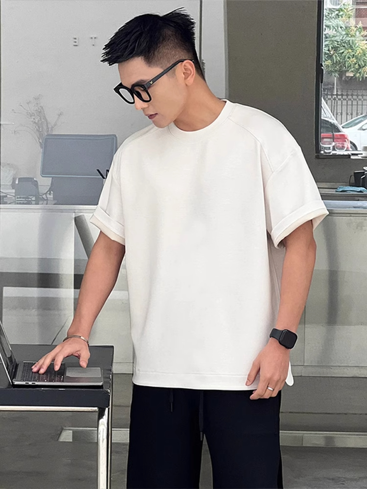 白色小领口纯棉t恤男生夏季320g重磅硬