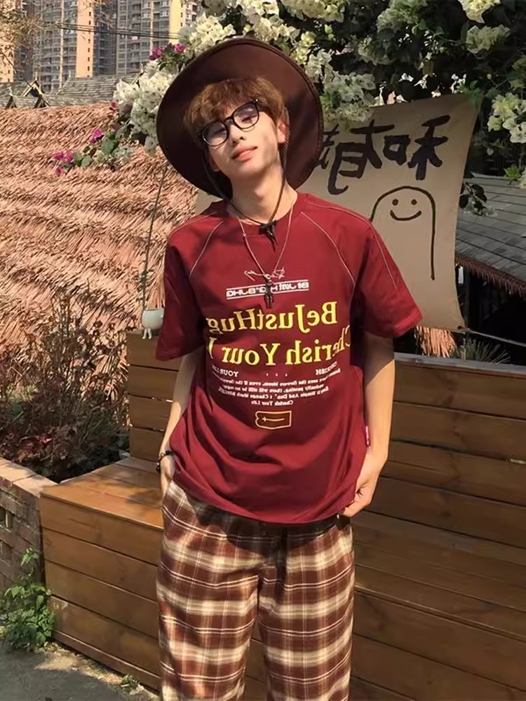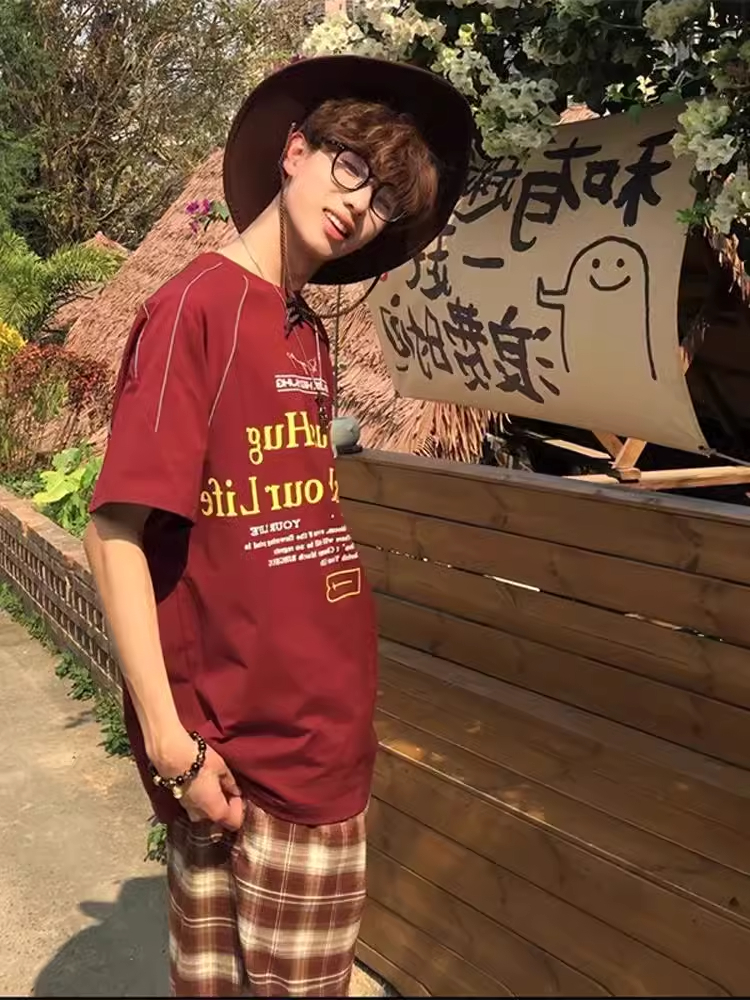卡通涂鸦印花短袖男少年感穿搭小领口t恤