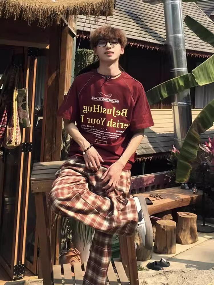 涂鸦卡通印花T恤男美式复古少年感短袖