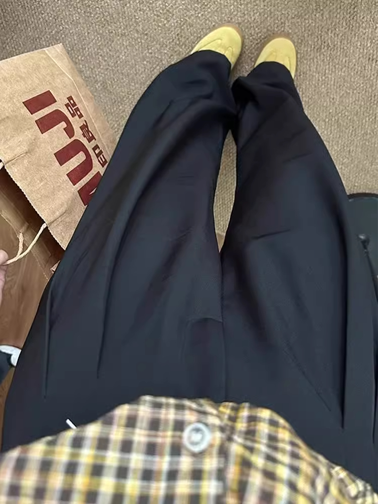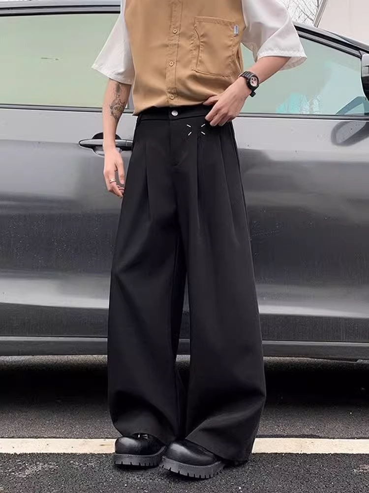 黑色垂感微喇西裤男款夏季高级感打褶阔腿裤