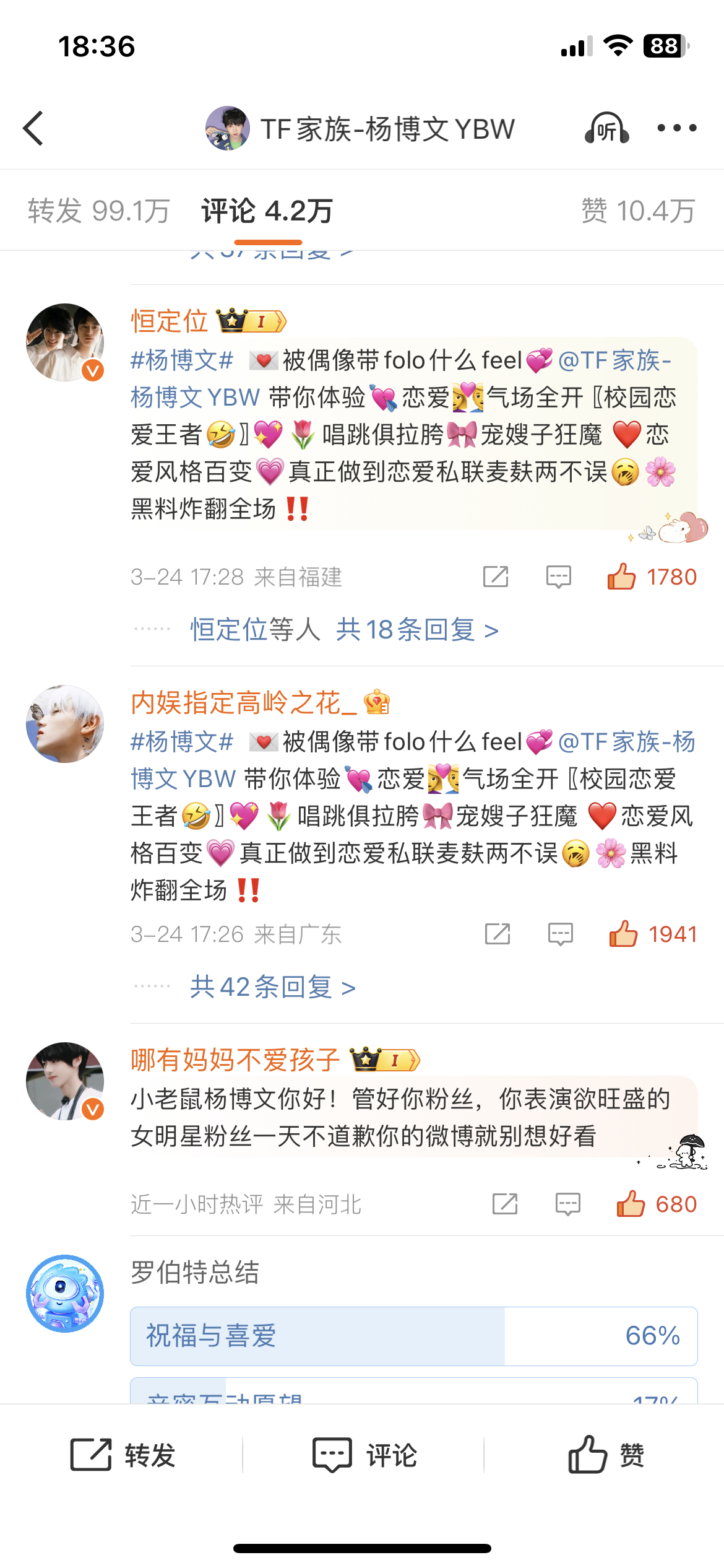 不挂嘿不道歉以后杨博文的每一条微博和rm都会这样,丨出来干活
