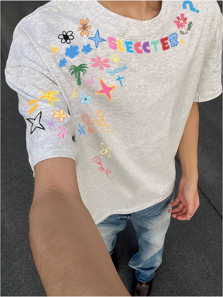 美式高街涂鸦印花短袖男款夏季小众设计感