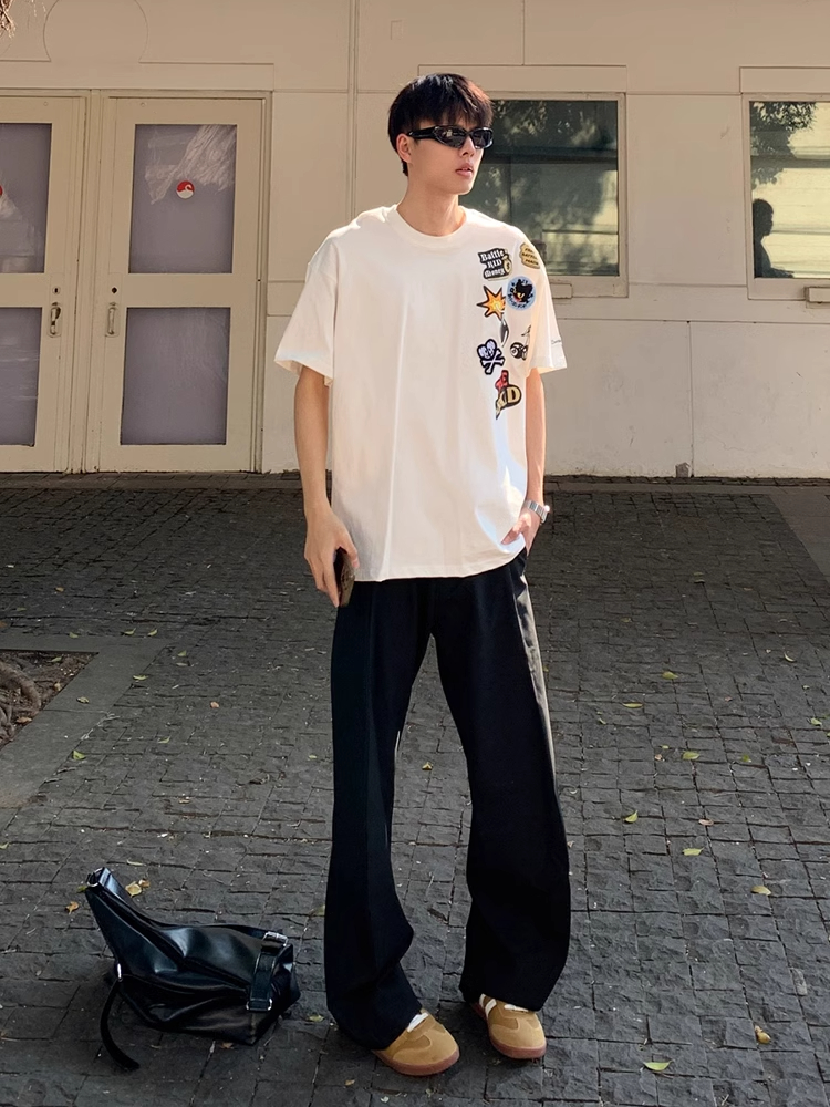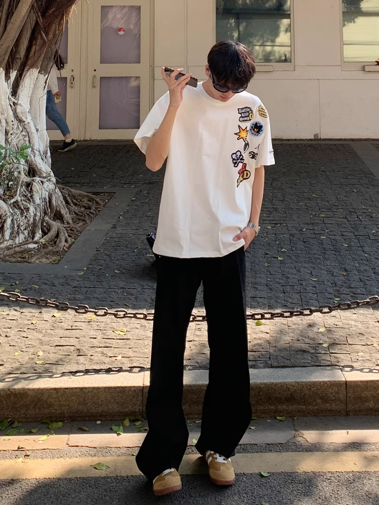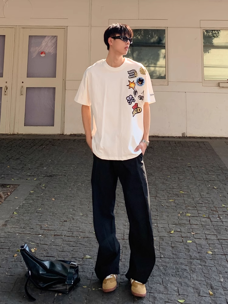卡通涂鸦正肩短袖男夏季cleanfit小