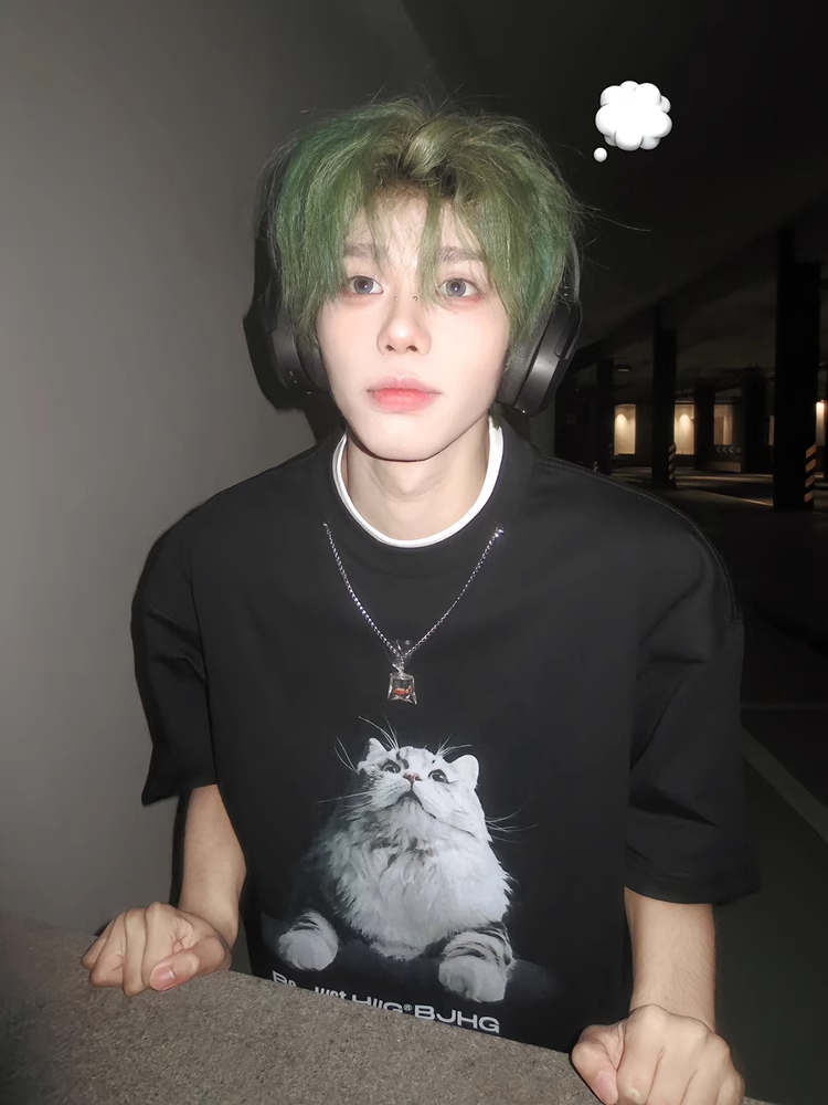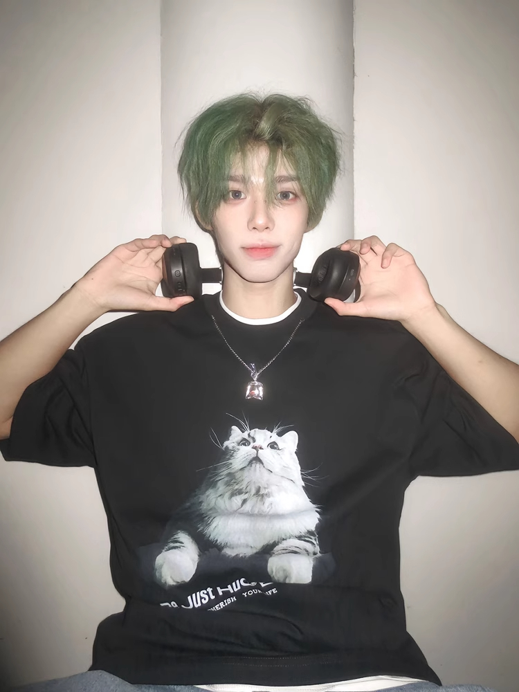 猫咪印花黑色短袖男夏季男生酷帅重磅正肩t