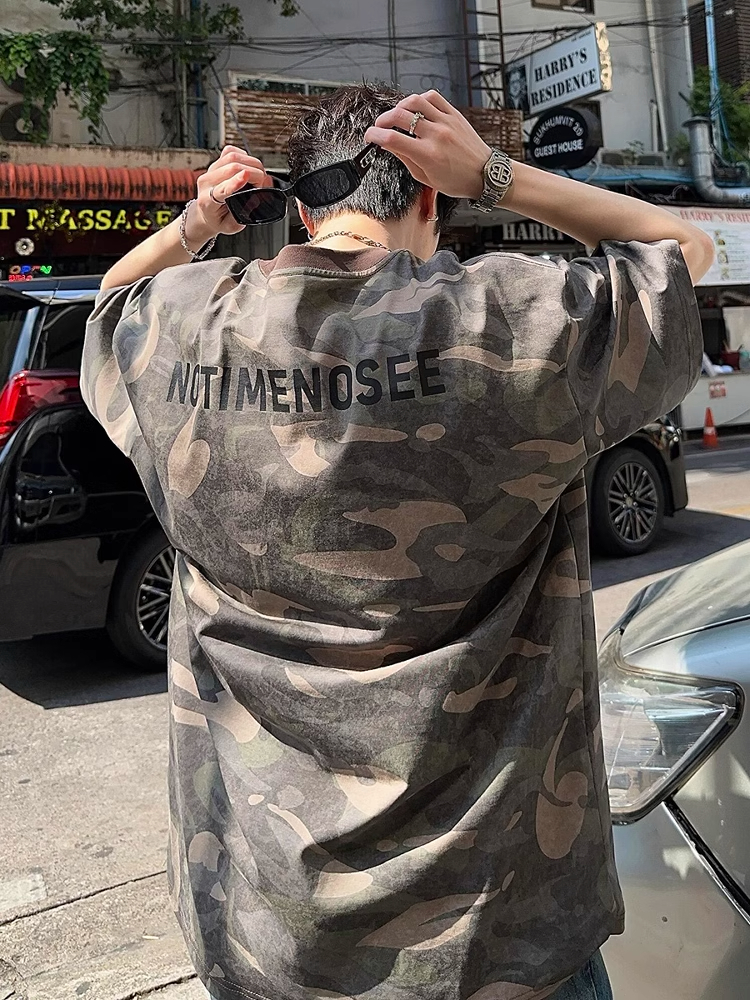 麂皮绒卡通动漫短袖男款夏季美式高街重磅t