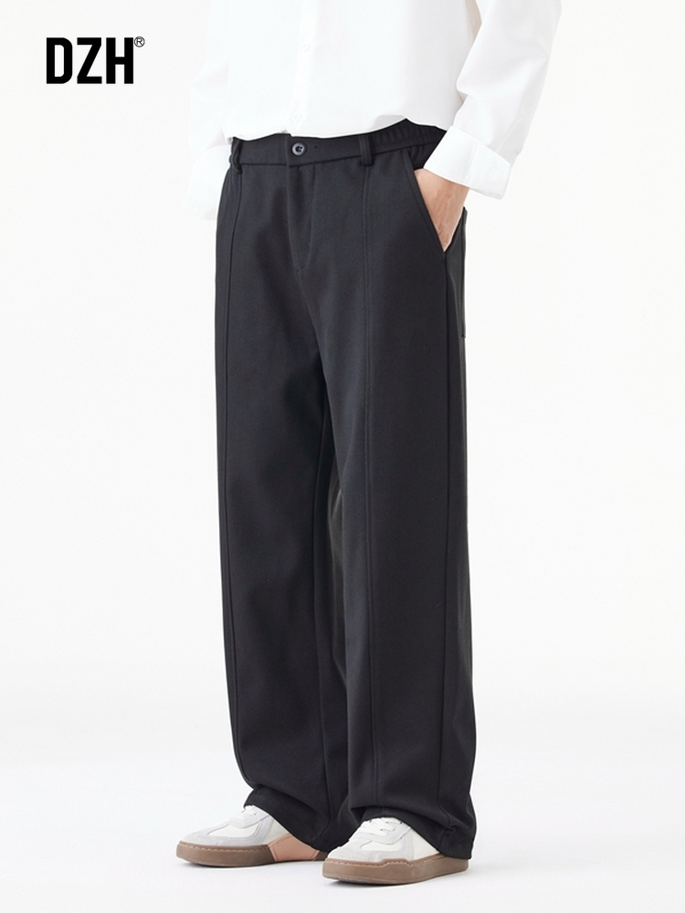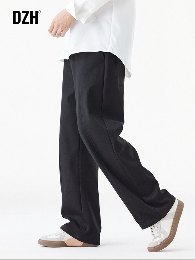 男士黑色裤子男款美式潮牌休闲裤直筒宽松冬季加厚小西裤2025新款