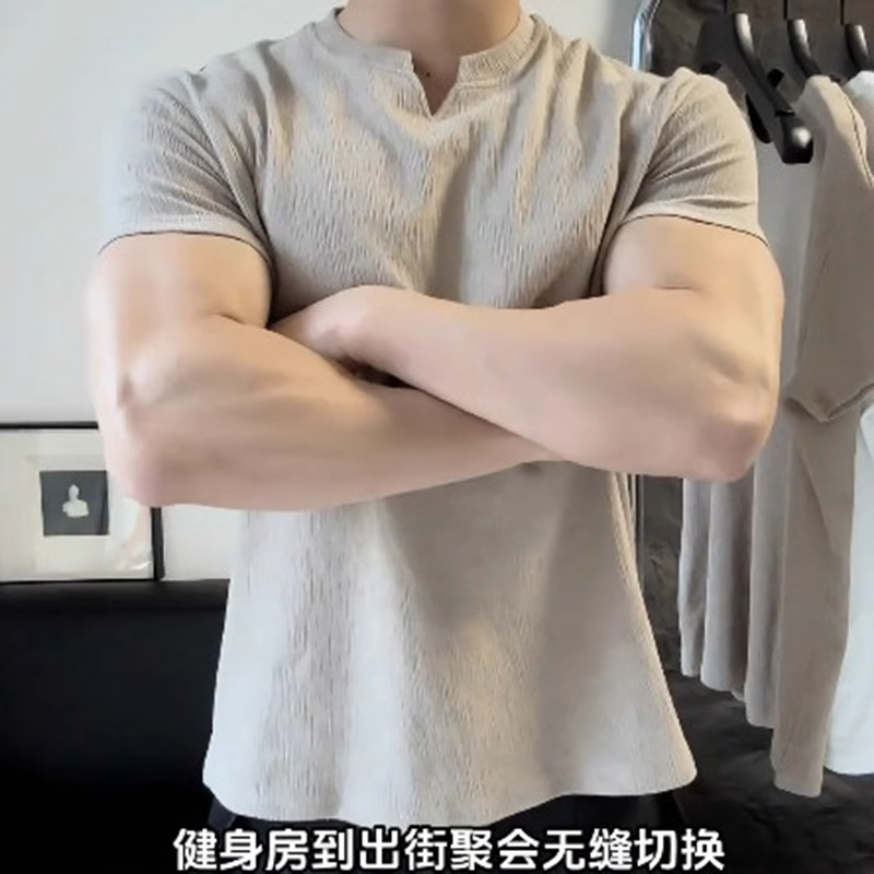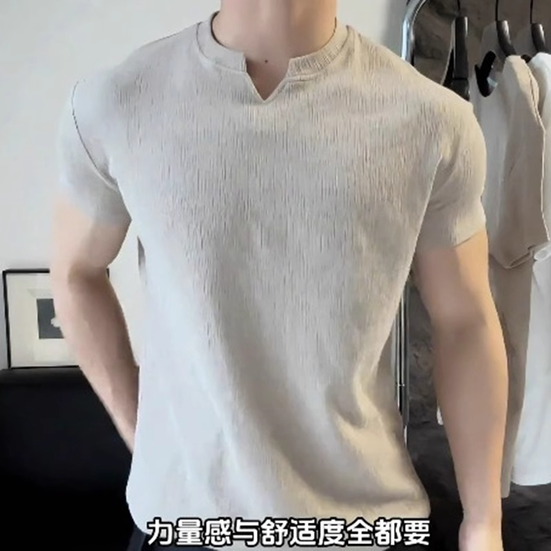 美式分割解构垫肩短袖男夏季潮牌小领口半袖