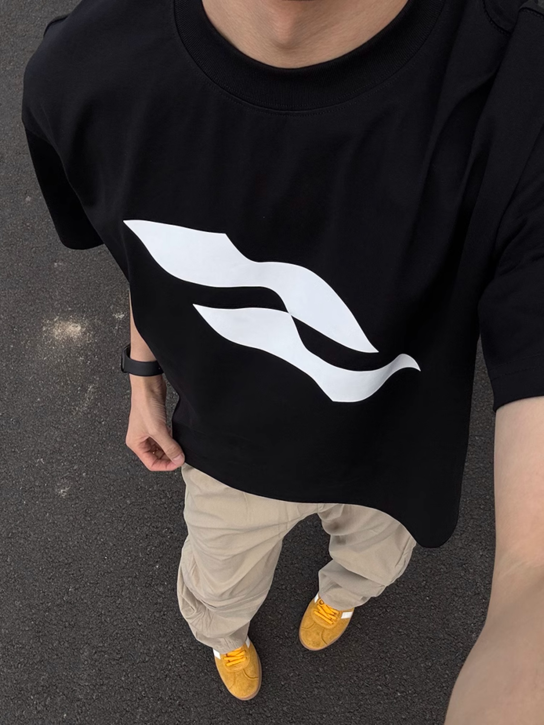 黑色正肩印花短袖男夏季美式重磅小领口半袖