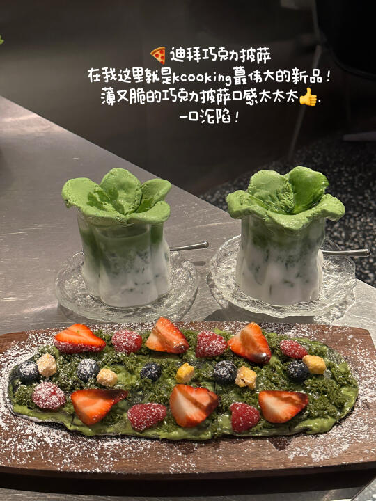 我又又又又来了!根本吃不厌!🥹 给大家总结了我每次来都会点的!不!踩!雷! ✔️迪拜巧克力雪冰🍧 一勺下去,融合牛奶和迪拜巧克力的内陷, 谁吃谁懂!淋上炼奶更丝滑~ ✔️猫和老鼠芝士奶酪 啊啊啊!新品巨可爱!!妥妥童年回忆 好浓郁的的芝士味,芝士片也是可以吃的! ✔️迪拜巧克力披萨 在我这里就是kcooking[搜索高亮]蕞伟大的新品! 薄又脆的巧克力披萨口感不要太👍! 一口沦陷! ✔️凤梨🍍年糕芝士火辣鸡 每次必点!!拉丝芝士裹上辣辣的鸡 肉和拉面!好吃s了!