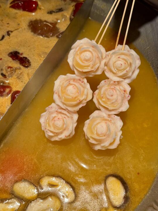 鳕鱼玫瑰真的又好看又好吃啊啊啊!!Q弹嫩滑!真的一口惊艳!! 还有三色番茄牛肉!可以自己DIY番茄牛肉饭!三色番茄+牛肉+米饭+淋上金汤番茄锅底!谁懂这一口的含金量!!