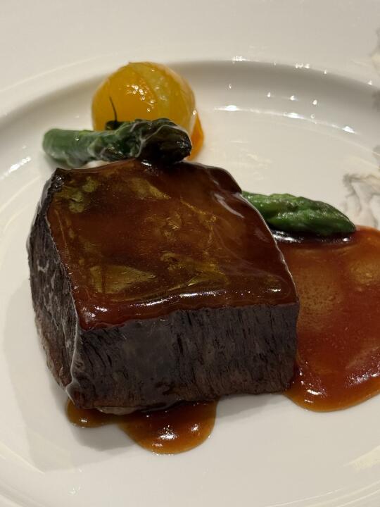 菜品主要还是以粤菜为主,上菜的间隙中,连更换骨碟的间隙都精心计算,刀叉重新排列成的形状,让等待化作“谈判桌上珍贵的留白”。