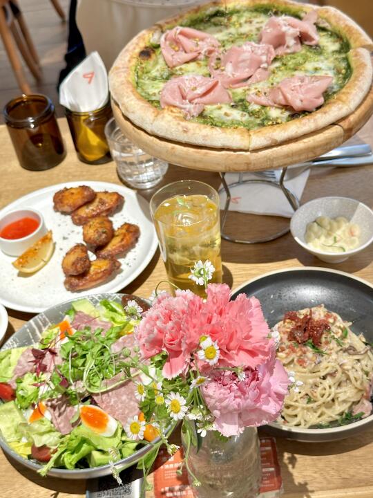 🖼️Grande A'moo(长楹天街店) 📍龙湖北京长楹天街西区一楼 有室外用餐区 阳光明媚的时候在外面吃很chill 💚招牌罗勒开心果披萨 窑炉现烤披萨的含金量🍕 粉绿配色非常春天🍃 开心果碎香香的 脆脆的 💛车轮芝士意面 想尝试很久了🍝 每根意面都裹满了芝士e 一口下去奶香四溢 🤎低温慢烤伊比利亚猪排 烧烤酱甜辣的很好吃 里面配的菠萝、羽衣甘蓝更是神来之笔 🧡碳烤鸡翅 外皮焦焦脆脆的 鸡翅很入味 一口爆汁 好看好吃又好拍 漂亮饭拍照就是出片📷 太适合姐妹聚会情侣约会啦