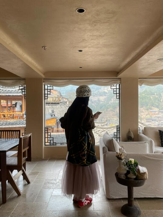 在苗寨的日子里 整个人都是淡淡的 在苗寨里晃悠 确实是三步一个旅拍店 可惜兴趣不大 索性直接在喜欢的民宿里发呆 万亩梯田的苗寨像一幅画 夜幕降临时 仿佛闯进了千与千寻的世界 -