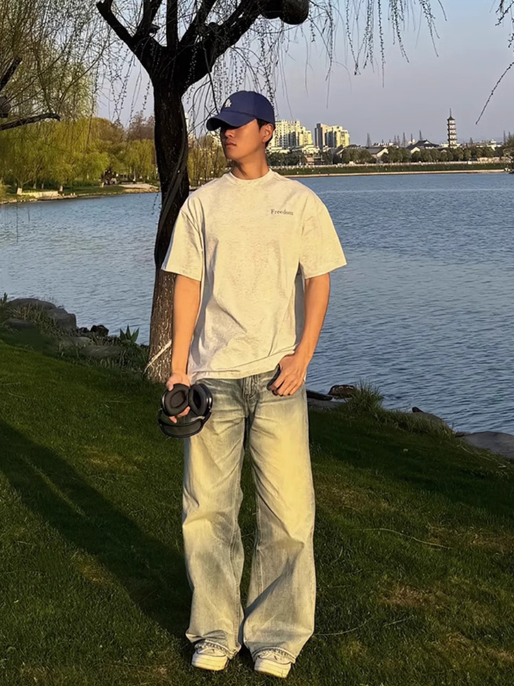 浅蓝色冰丝牛仔裤男款夏季薄款垂感直筒裤美