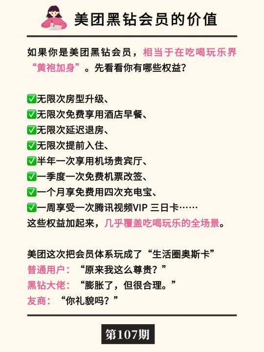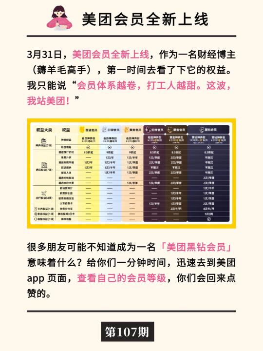 宝子们,美团这次把会员体系玩成了“生活圈奥斯卡”—— 普通用户:“原来我这么尊贵?” 黑钻大佬:“膨胀了,但很合理” 友商:“你礼貌吗?” 最后,给大家一个小任务:亮出你的美团会员等级,你希望拥有什么权益?