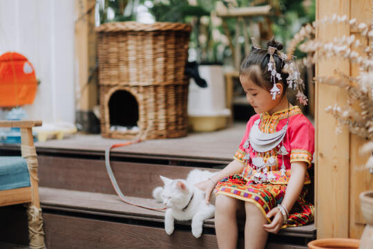 粉粉可可爱爱的小女孩👧 和小店员乐乐🐱的合影超治愈[哇R] 谁不想给自己的小公主来一组这样随性放开的童年照呢? 咱的摄影师有耐心技术牛,小甜心们都会很喜欢她[亲一个R][亲一个R]