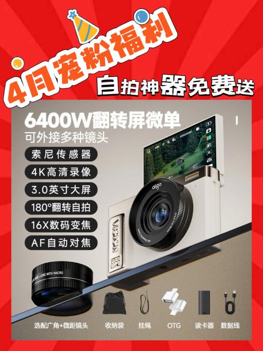 4️⃣月抽奖速进🎁免费送微单相机自拍神器!