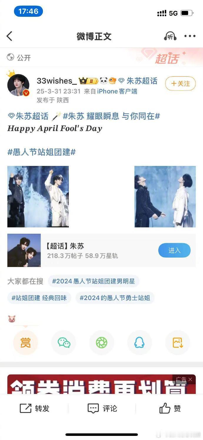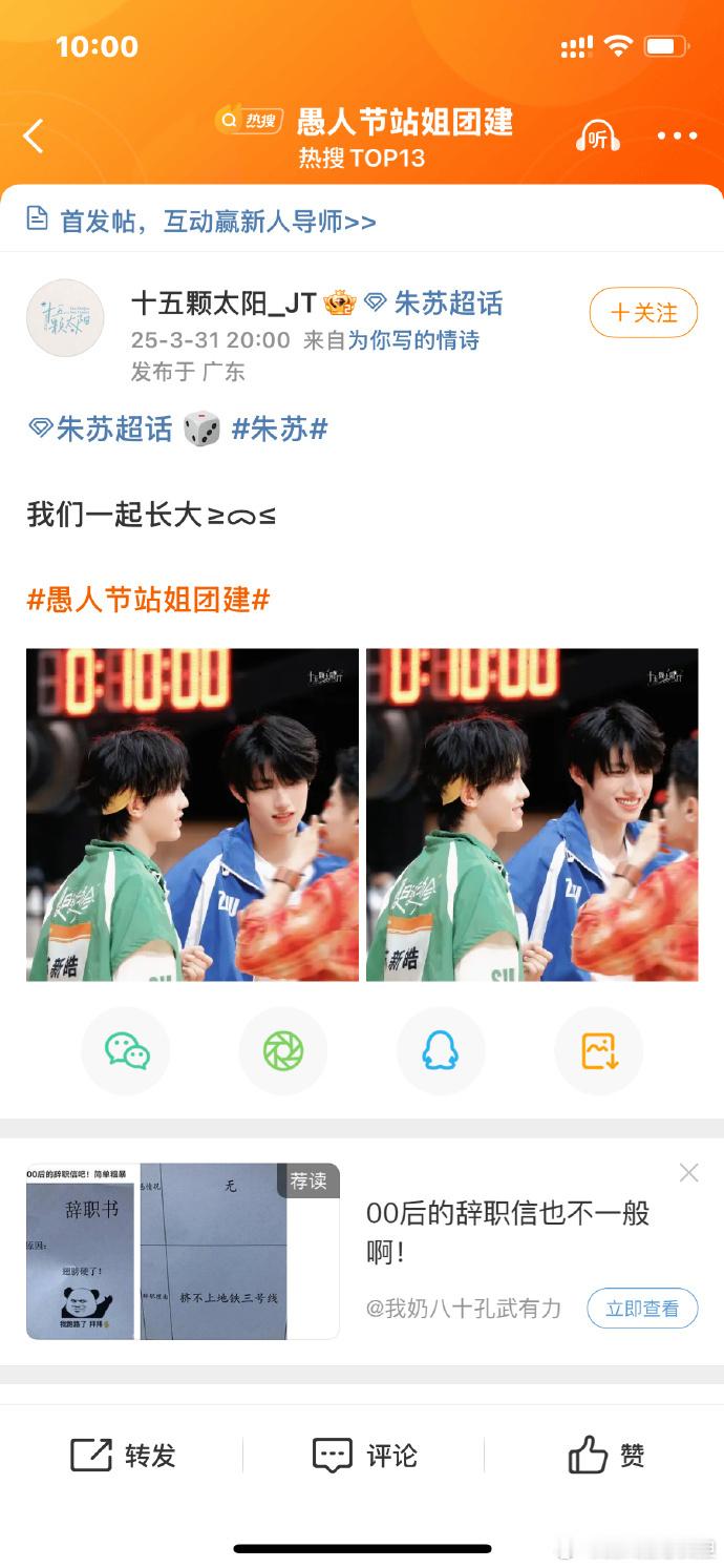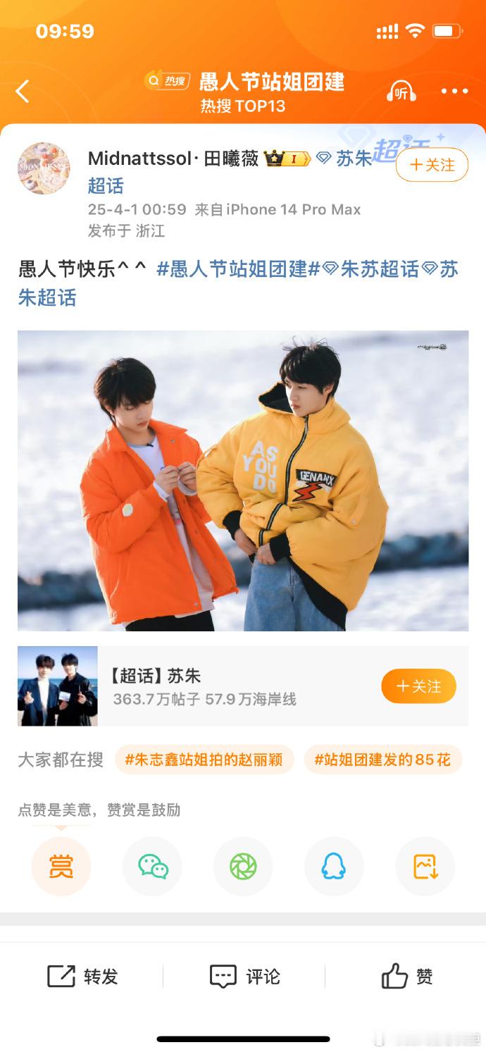 100个站姐愚人节发了朱苏刷到100个站姐愚人节发朱苏,弟弟们热度飙升,在娱乐圈