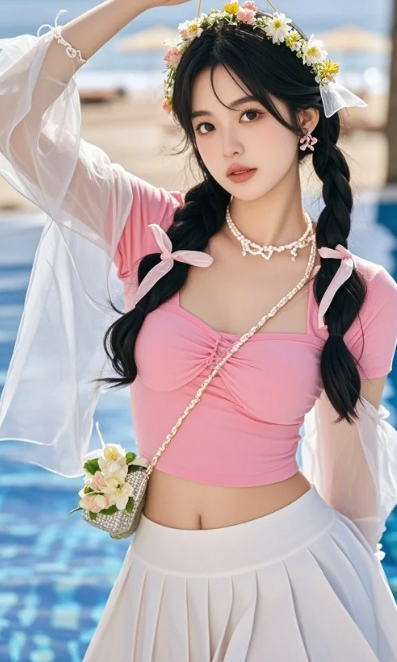 碧波为幕,发丝为诗,共写此刻浪漫?