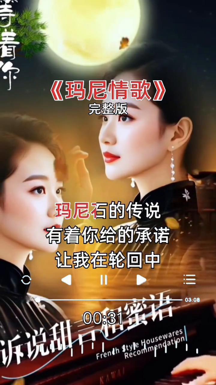 《玛尼情歌》完整版。 太阳的雅鲁藏布,月亮的日喀则,思念的唐古拉山吼,爱情的狮泉河,神圣的布达拉宫,多情的纳木措,在我的心里无人能代替。永恒的珠穆朗玛峰上采雪莲一朵,天上的雄鹰高飞,地上的骏马驰过,我是人人在想你,亲热的酥油茶香飘过高原的部落,玛尼石的传说有着你给的承诺,让我在轮回中唱着前世的情歌,等我心中的情歌,锅庄摇曳篝火,你是我的佛,守着格桑不寂寞,三生缘定因果,我等你来娶我。