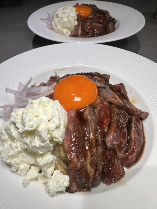 好满足的一碗海鲜饭!真的治愈强迫症! 还有甜虾饭,每一颗甜虾都是很软糯,品质超好!和鸡蛋一起搅拌,蛋白质大满足! 还有涩谷同款牛肉饭!!真的是人生牛肉饭……酸奶酪加上牛肉和蛋液拌开好好吃!!牛肉特别嫩!酱汁拌开
