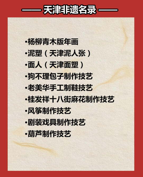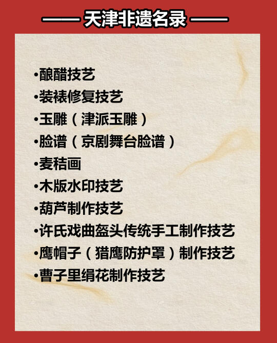 🔴这座依河而生、因漕运而兴的历史名城,不仅是北方重要的经济枢纽,更是一座承载千年文化基因的“非遗宝库”。 🔴天津非遗名录的构建,体现了传统与现代的共生智慧。是技艺的存档,更是城市精神的延续。见证着天津人“守正创新”的文化自觉——在坚守传统内核的同时,以非遗工坊、数字化传播、跨界融合等方式,让古老技艺在当代社会找到生存土壤。