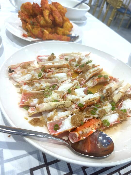 我跟家属说我们既然在纽约,得吃点别地儿少有的。于是长途跋涉来到法拉盛的渔村,离主街还有一段距离,地铁不能直接到,对于新泽西居民来说着实算是远途。但总算吃回票价,点了只将近6磅的帝王蟹,三吃做法:壳子蒸蛋、身子炒金沙咸蛋黄、钳子蒜蓉蒸。每种做法都有独特风味,金沙炒蟹实在是太香了,清蒸又突肉质细嫩。还点了条2.5磅东星斑两吃:鱼头鱼尾配豆腐小白菜炖出奶白色浓汤,浓郁厚重回味无穷,鱼球炒韭黄芦笋,鱼肉最精华的部分质地弹牙。
