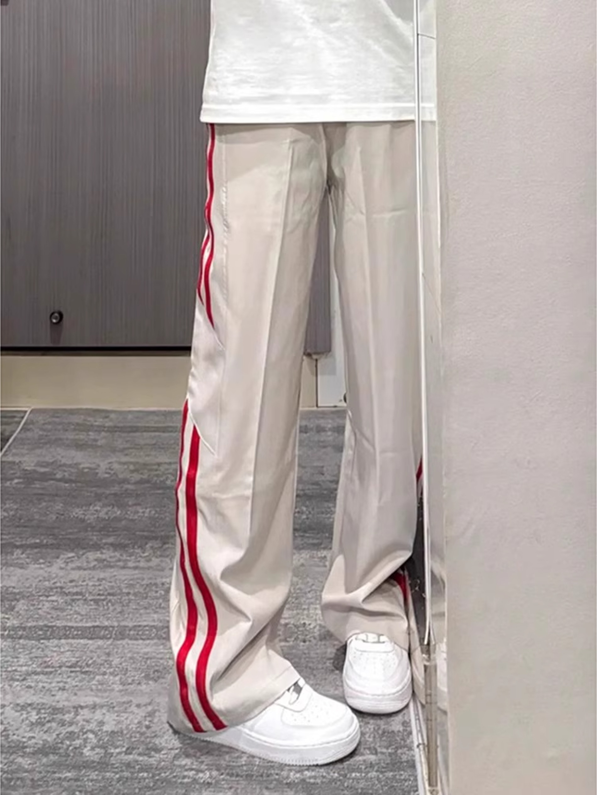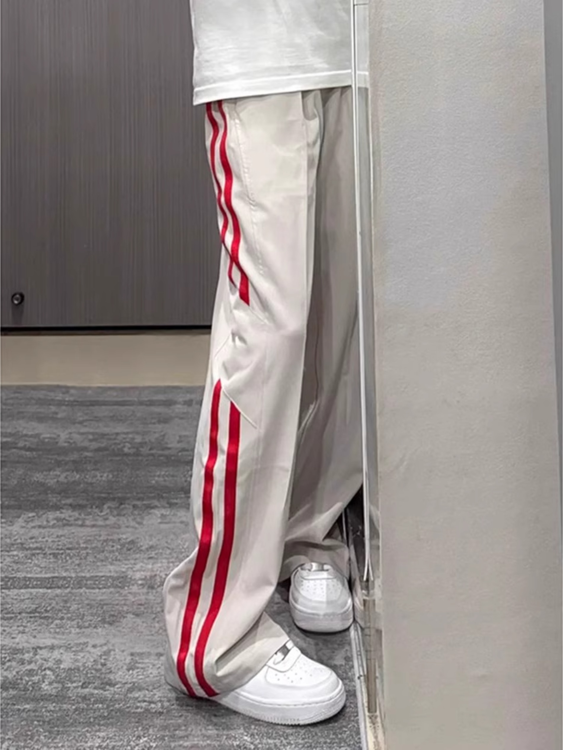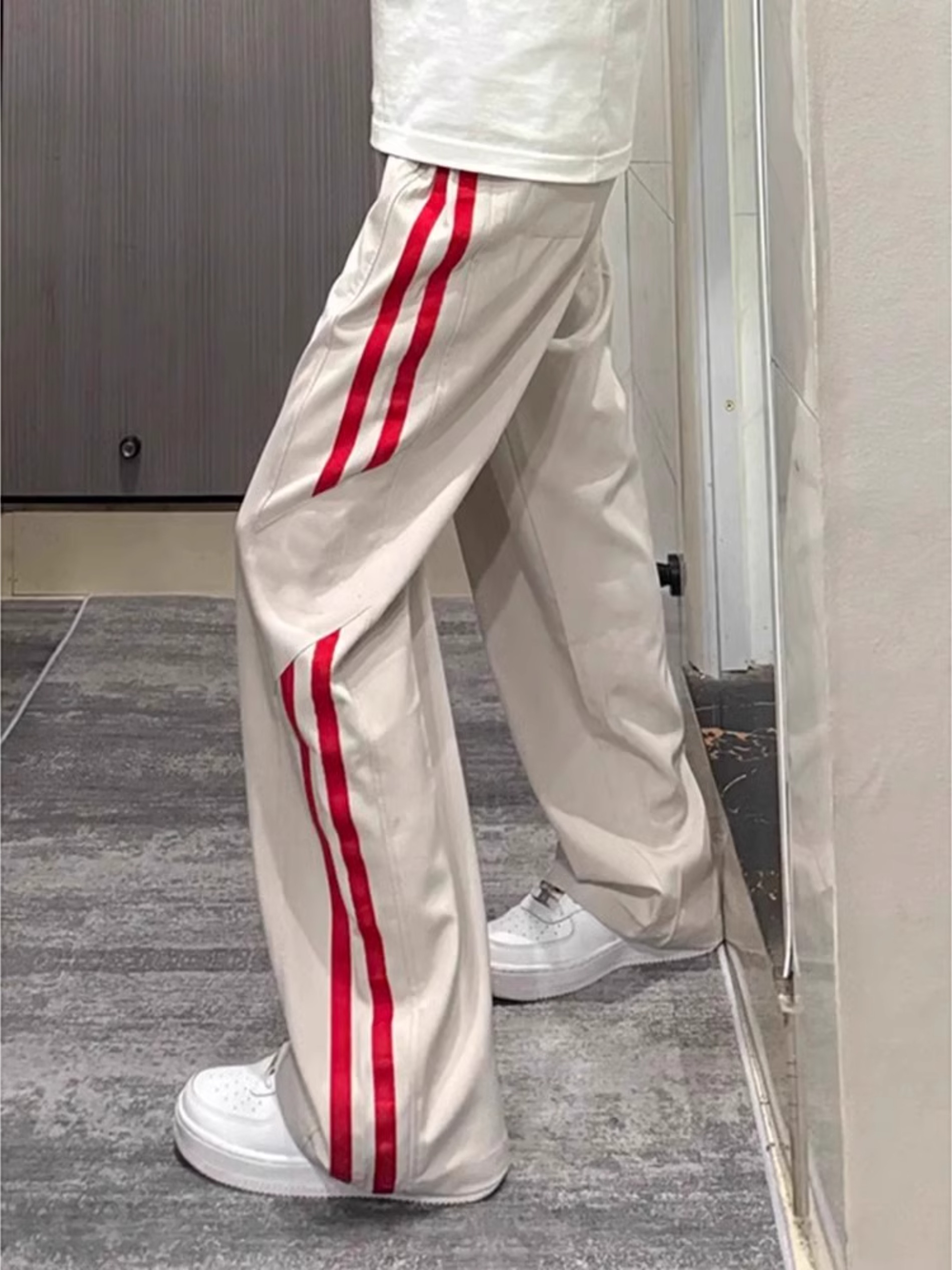 红白条纹冰丝裤子男款夏季薄款凉感速干运动