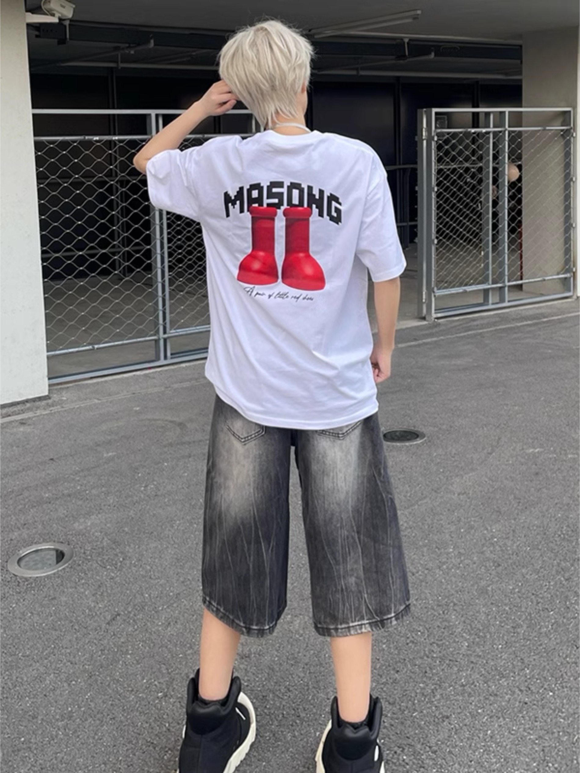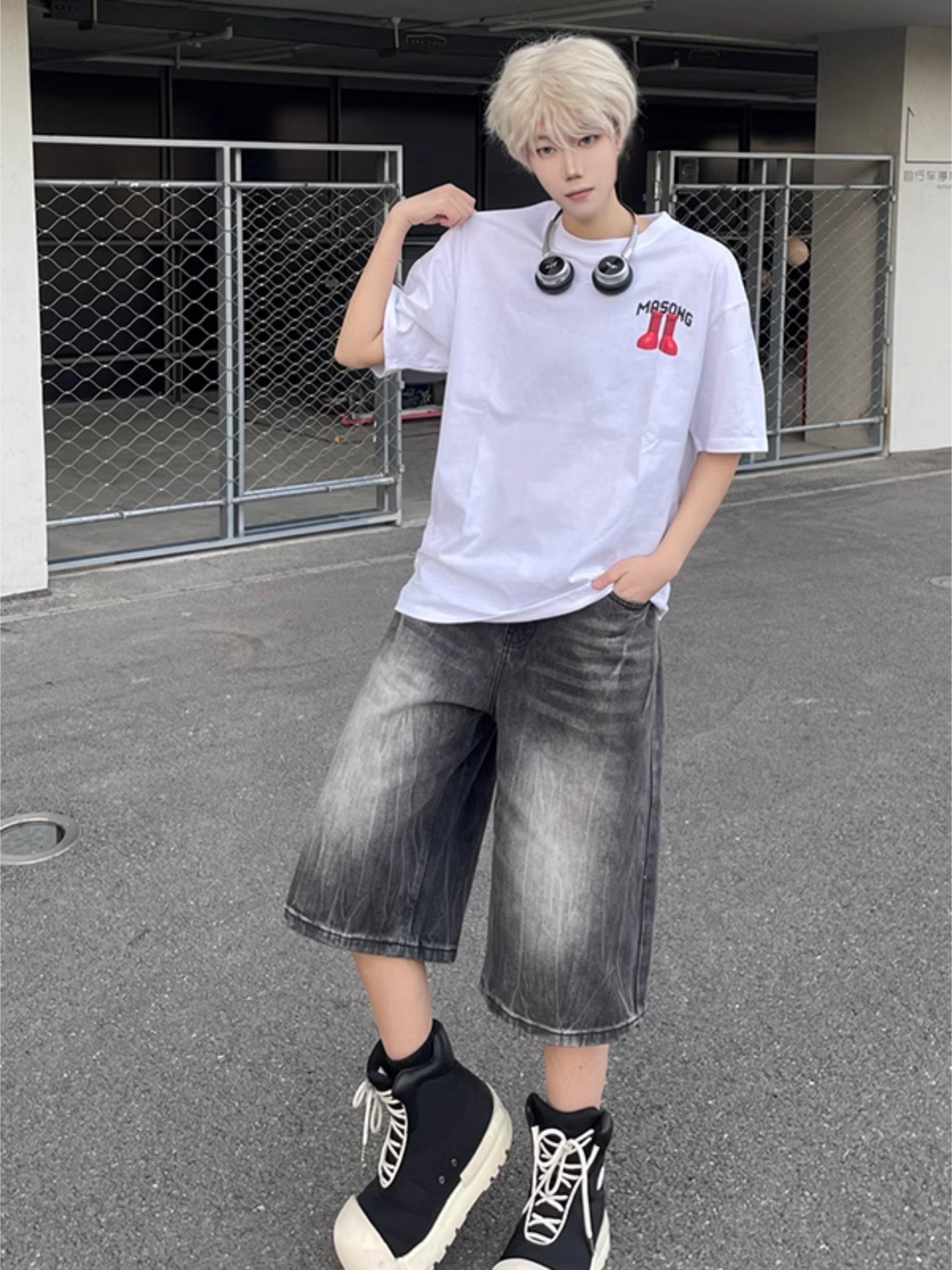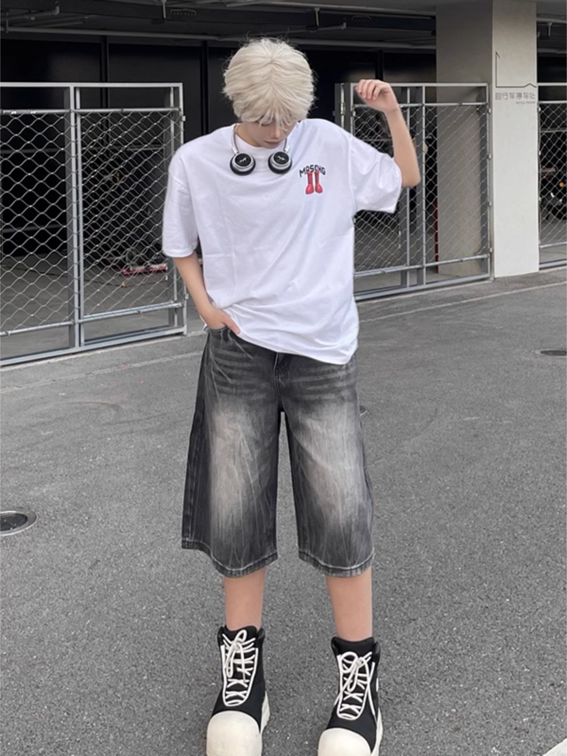 闪电龟裂纹牛仔短裤男美式hiphop炸街