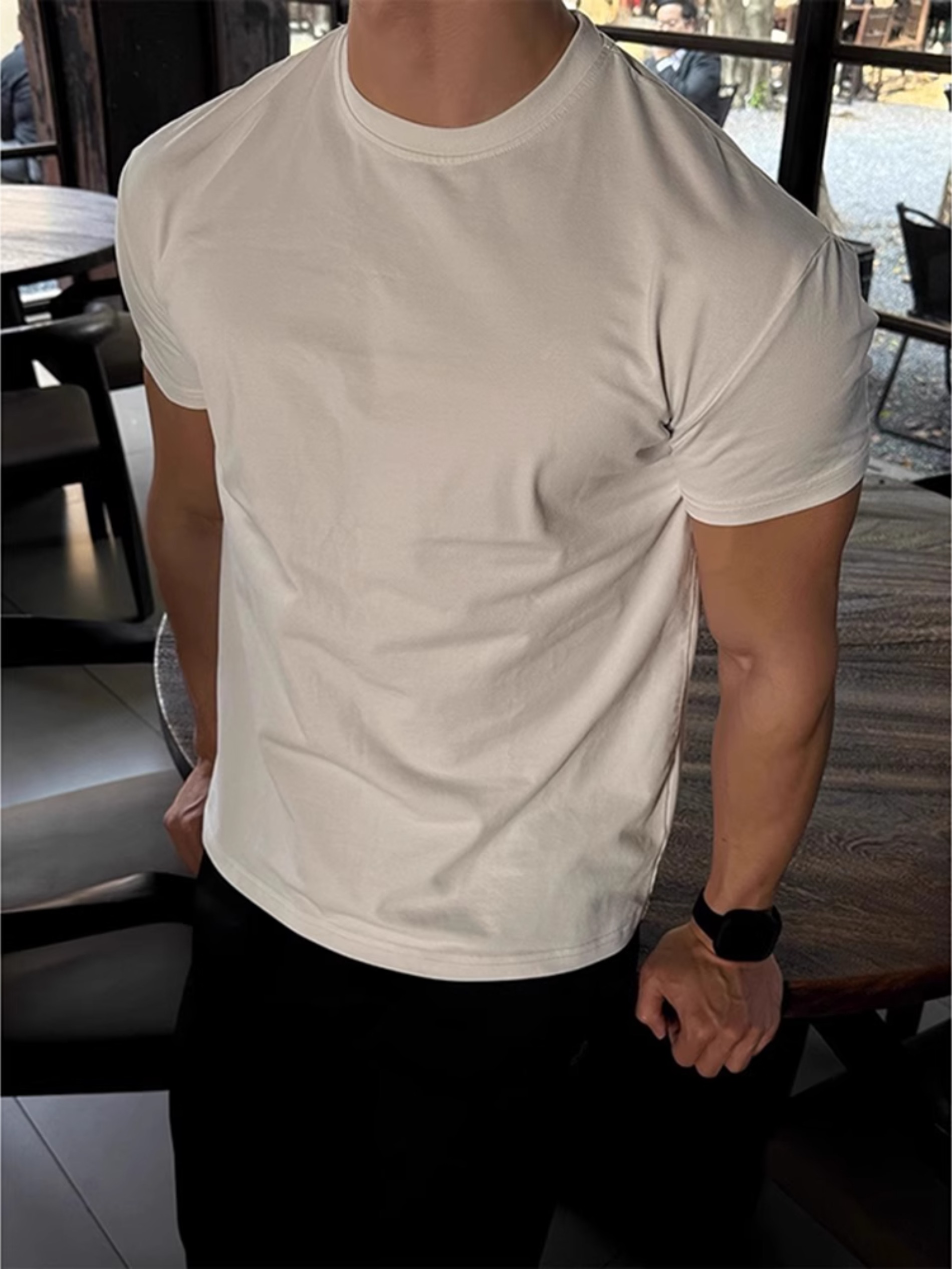 白色索罗娜修身短袖男款夏季美式收袖口正肩