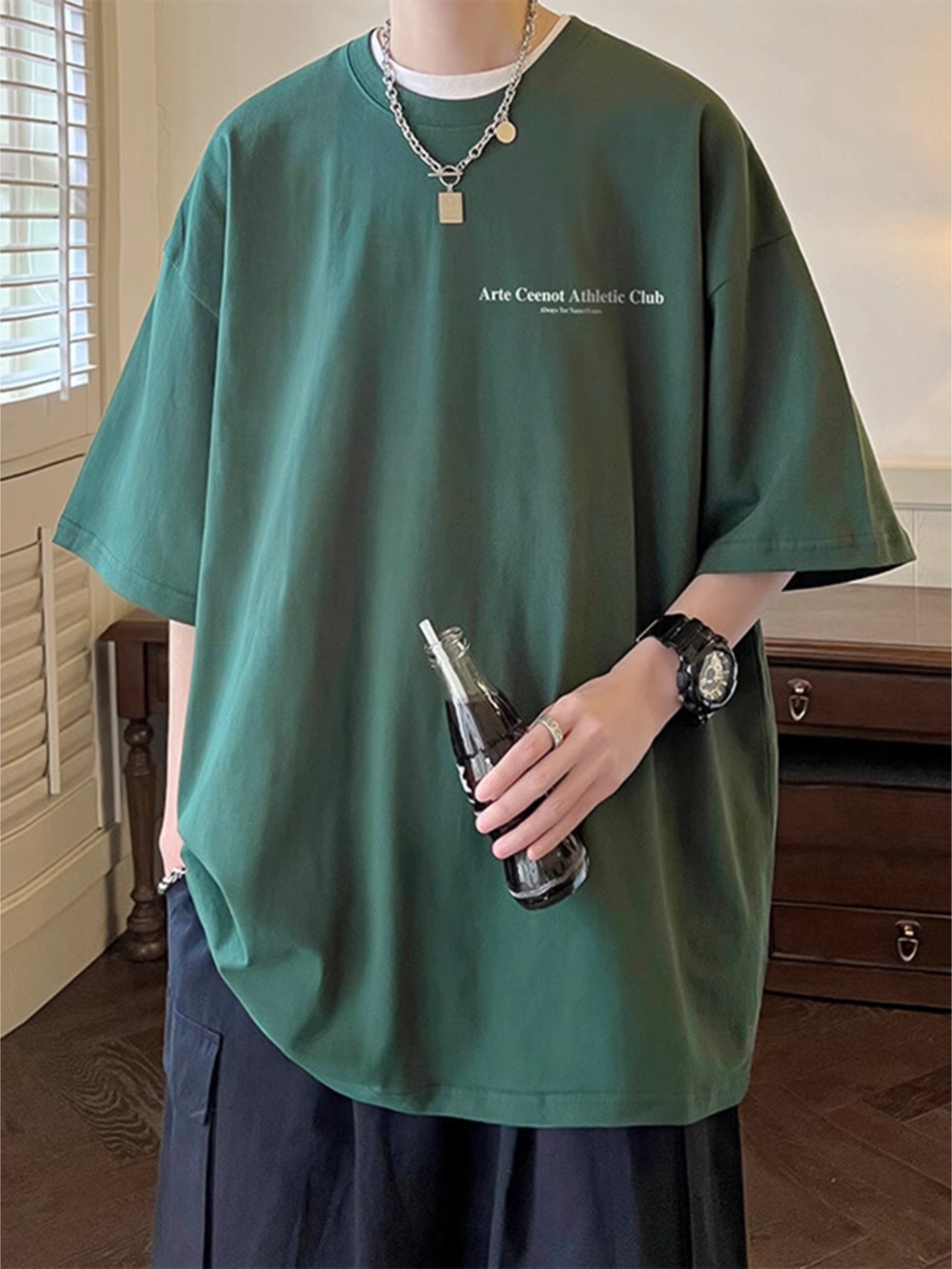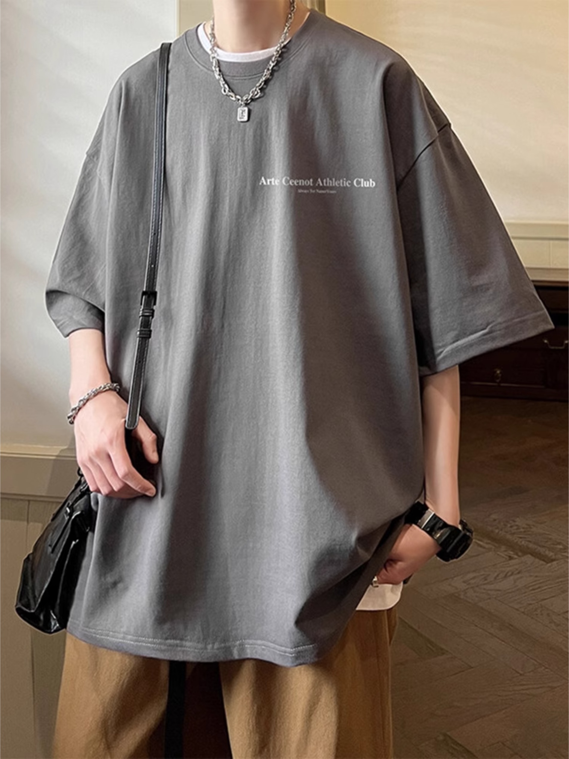 灰色太空棉拼接短袖男夏季透气小领口男生T