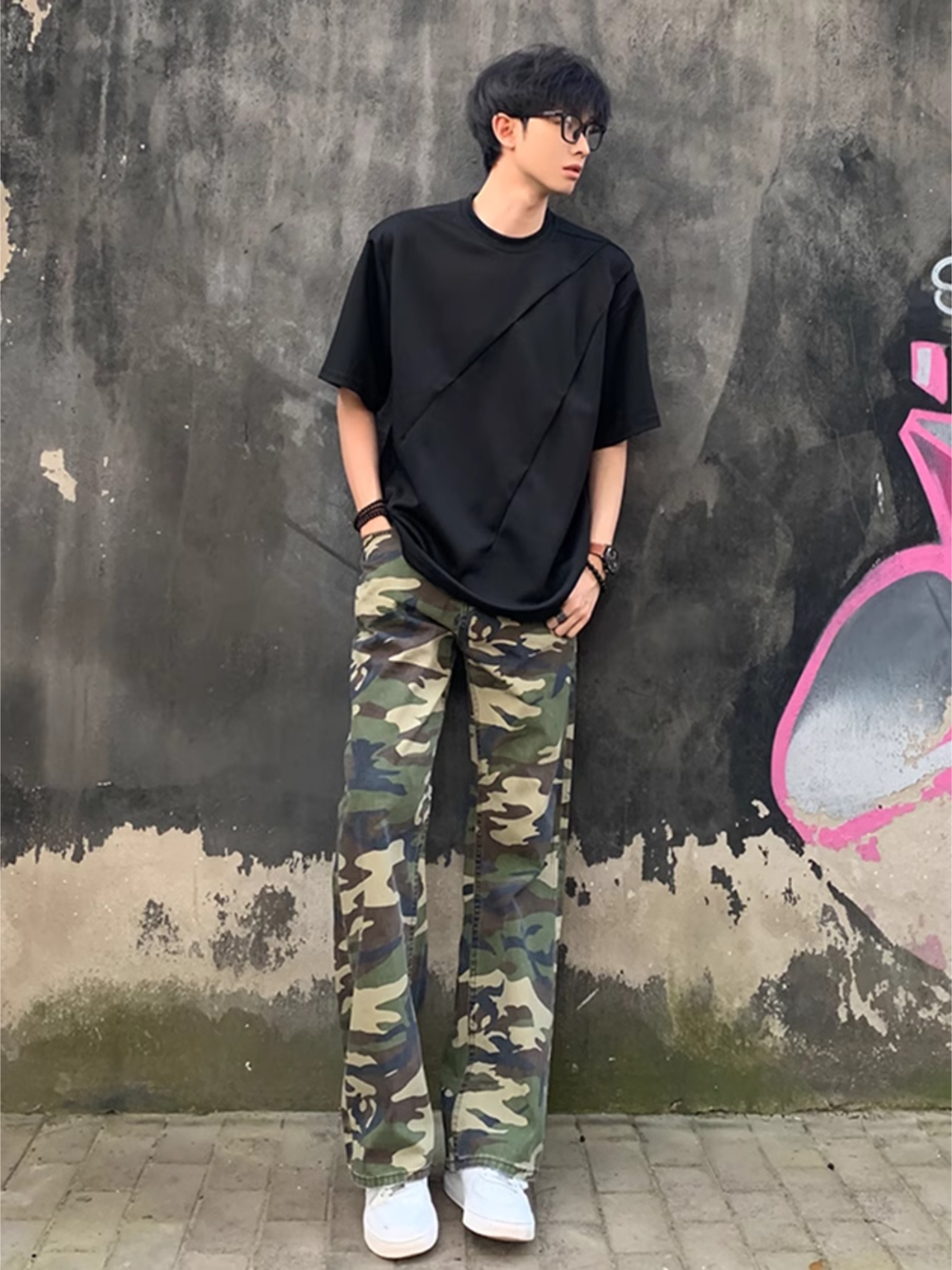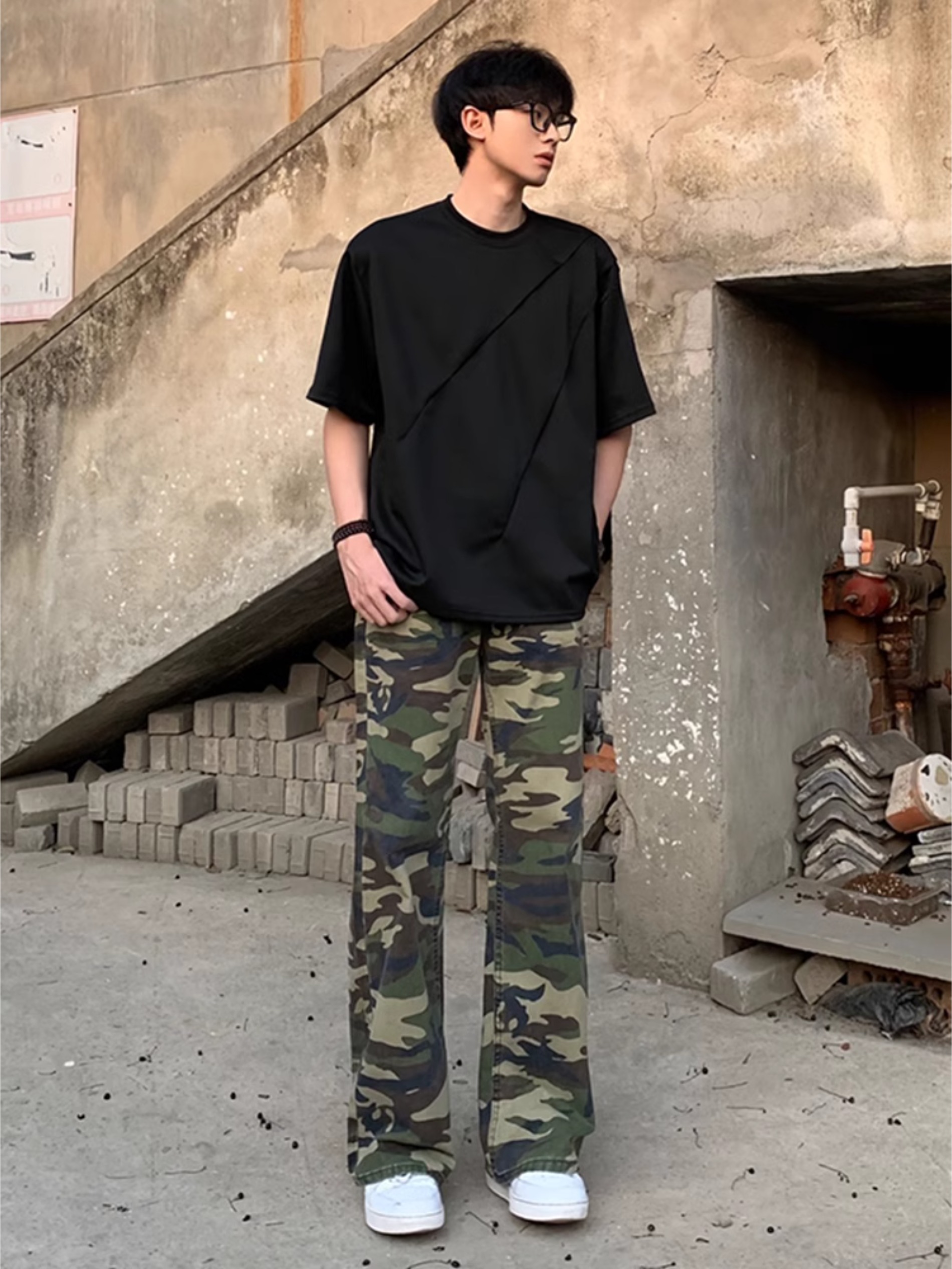 解构拼接boxy短袖男款夏季美式斜褶小领