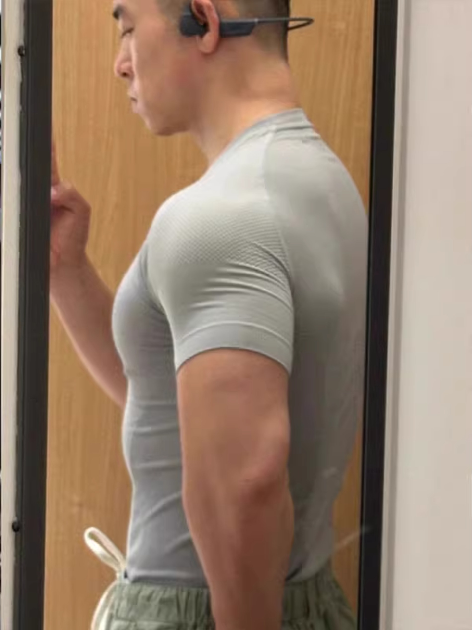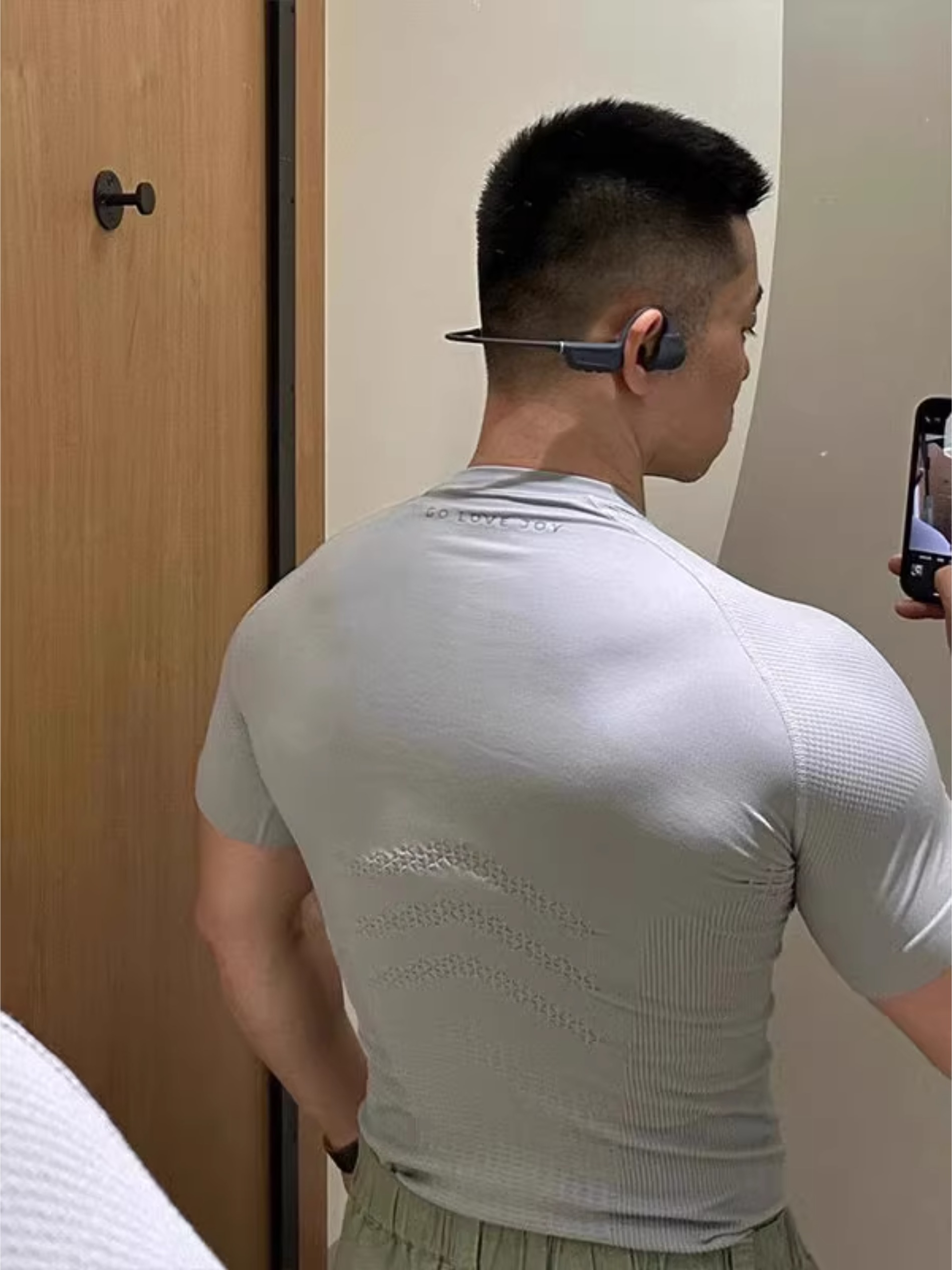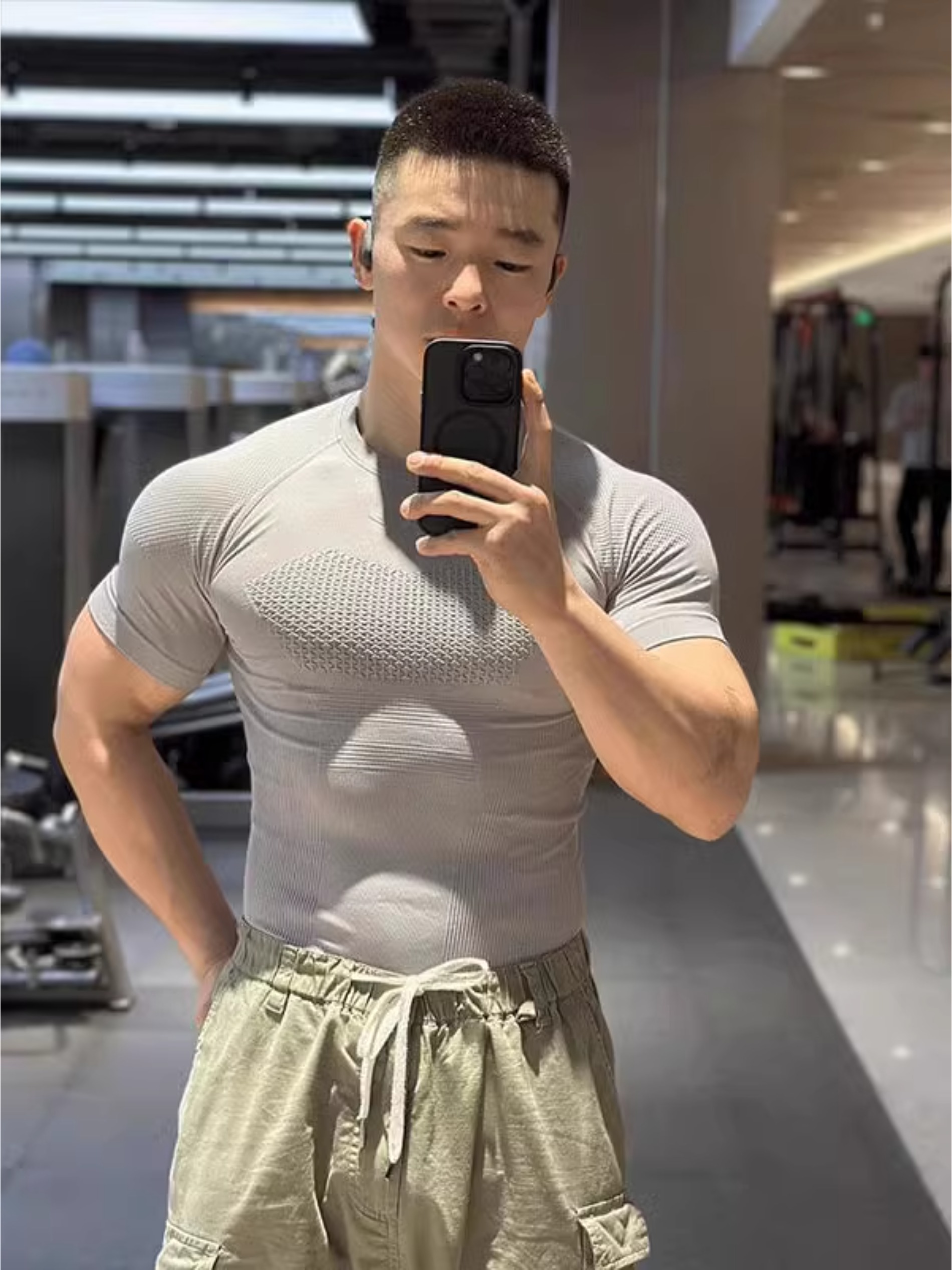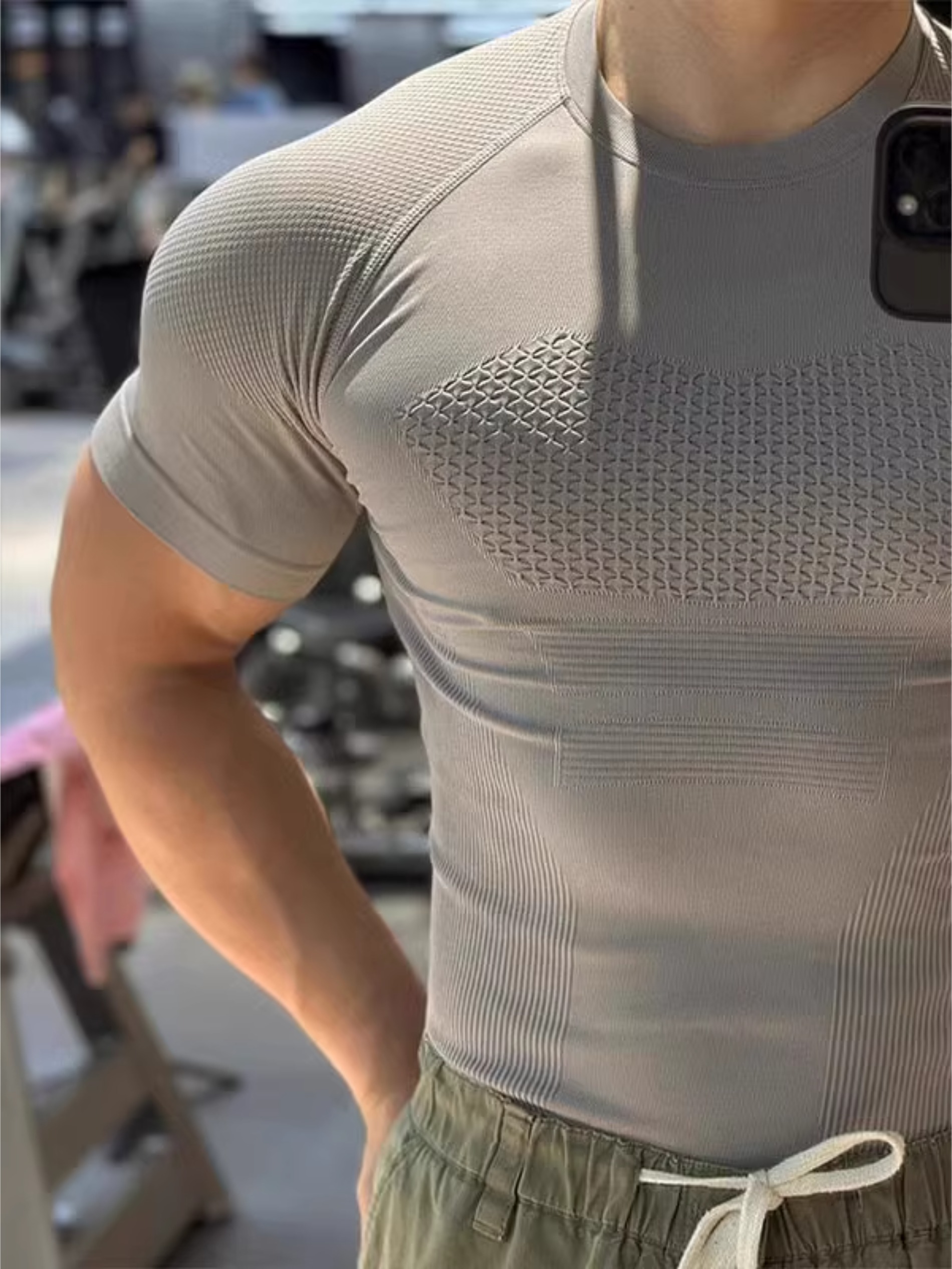 鱼鳞纹无缝收袖口T恤男夏季弹力透气速干短