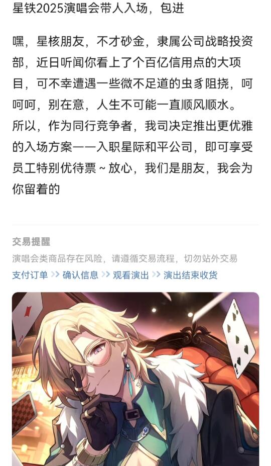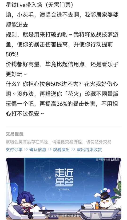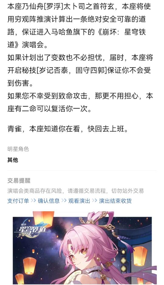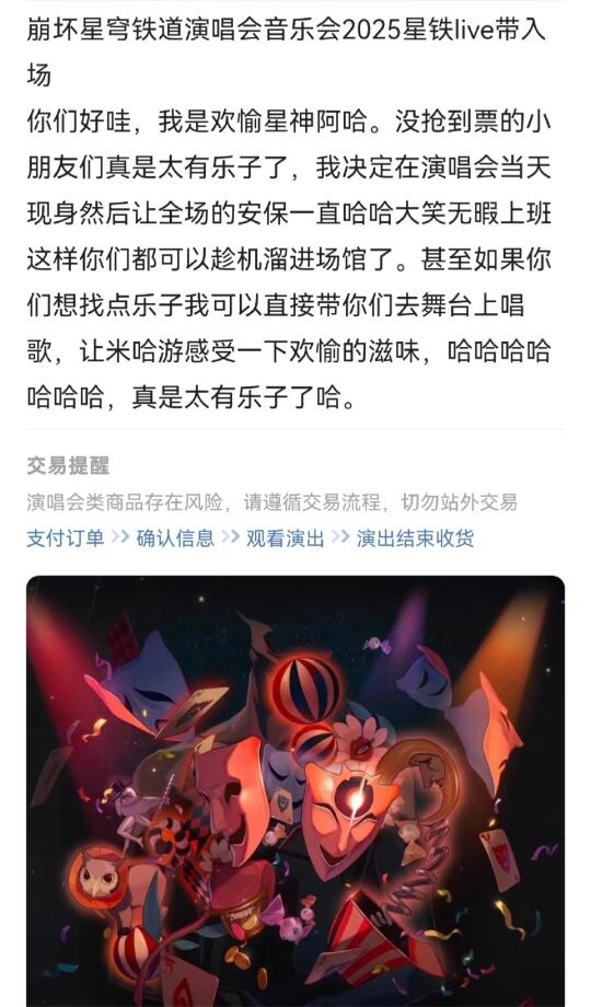 抢不到星铁演唱会的票后,🐟上多了很多星铁演唱会带入场的文案 网友们真的太有才啦!这里整理了一部分给大家康康,阿哈表示这届网友都很适合走上欢愉命途[doge]