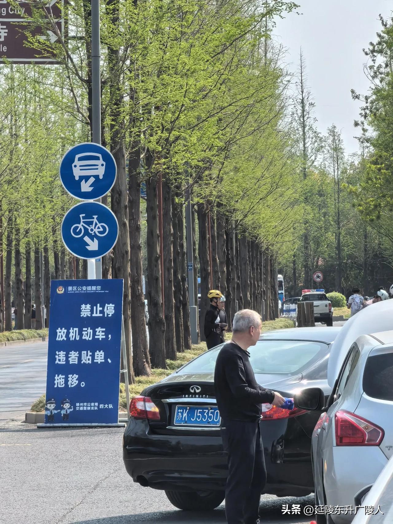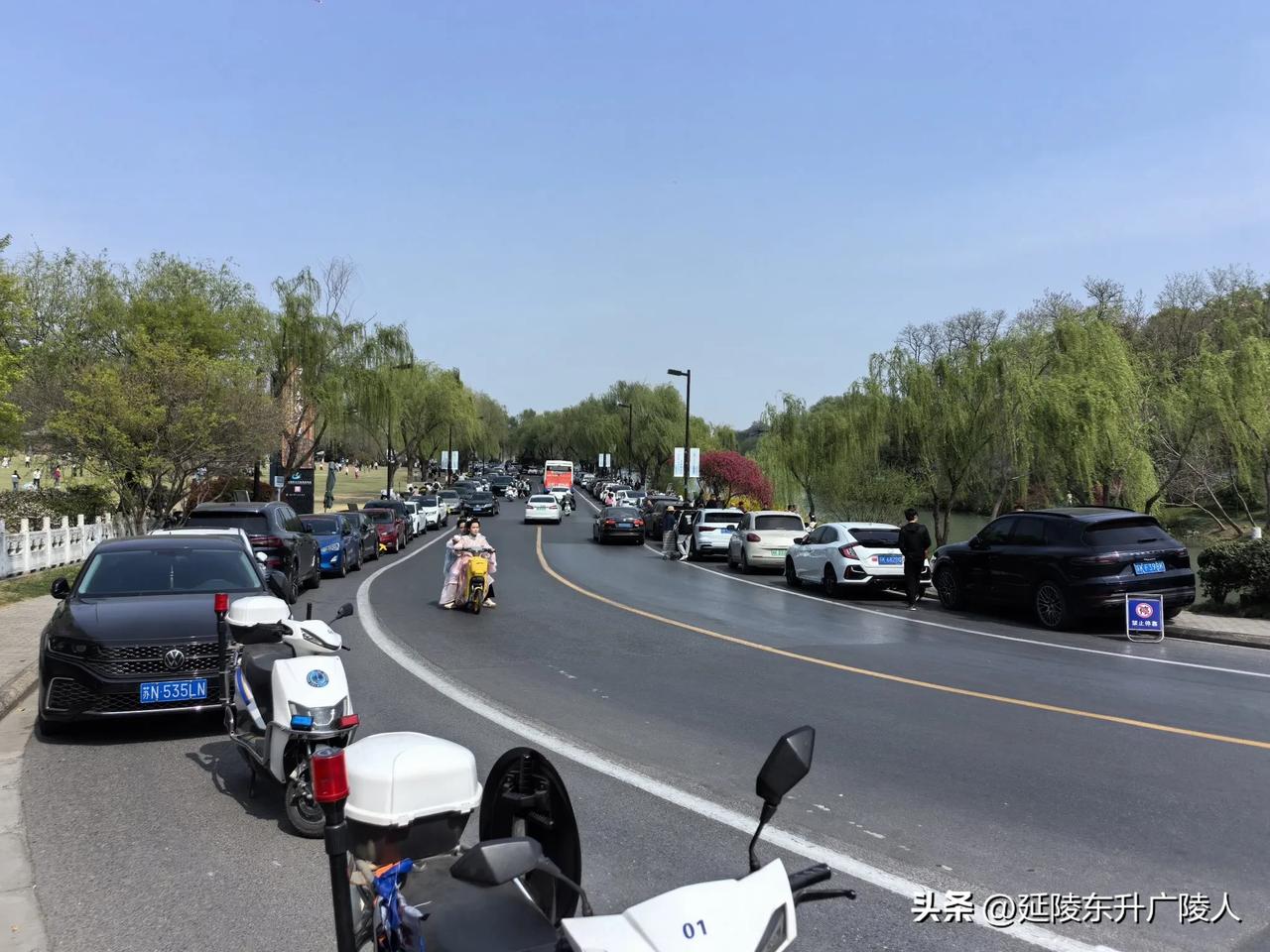 扬州蜀岗瘦西湖周围的道路两边,停满了外地牌照的车辆。还有警察帮忙管理,扬州对游客真的是偏爱有加。[赞]