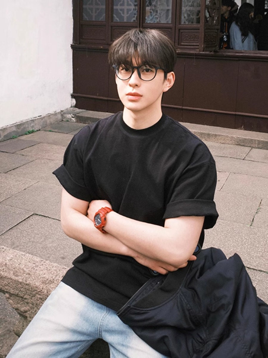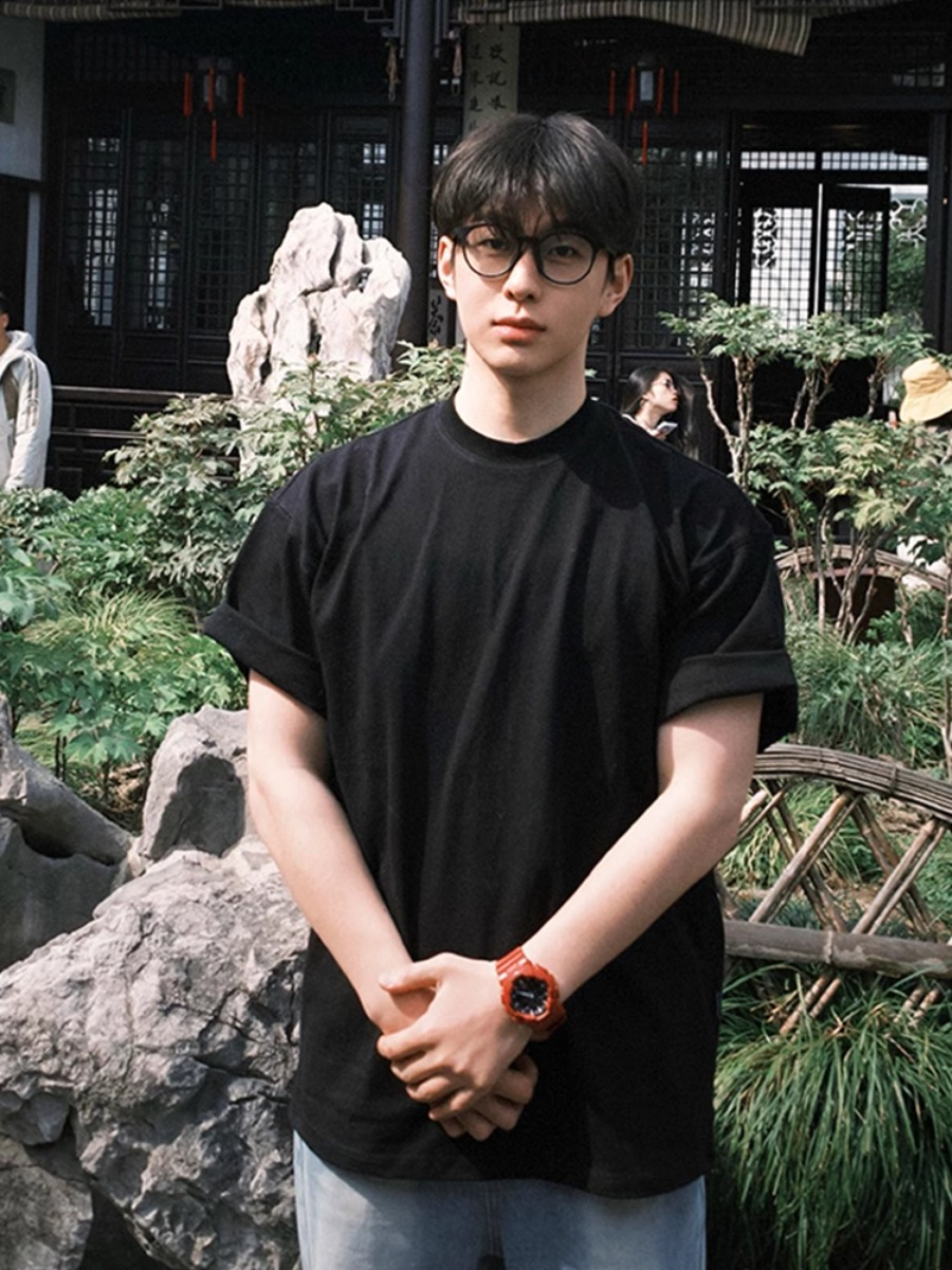 300g重磅黑色纯棉t恤男夏季少年感三本