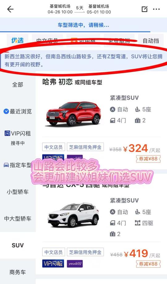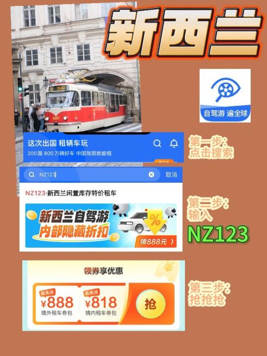 出国自驾我都会选择租租车APP,这次在新西兰租车时,我居然发现了一个超级隐藏折扣页面!通过在首页右上角输入专属优惠码【NZ123】,立刻就能领取大额优惠券,价格比直接预定便宜好多!页面内有新西兰实时特价车辆库存,!实时特价+大额优惠券抵扣!省上加上省!这个隐藏折扣页面非常隐蔽,大家一定要记得输入优惠码,才能看到哦!