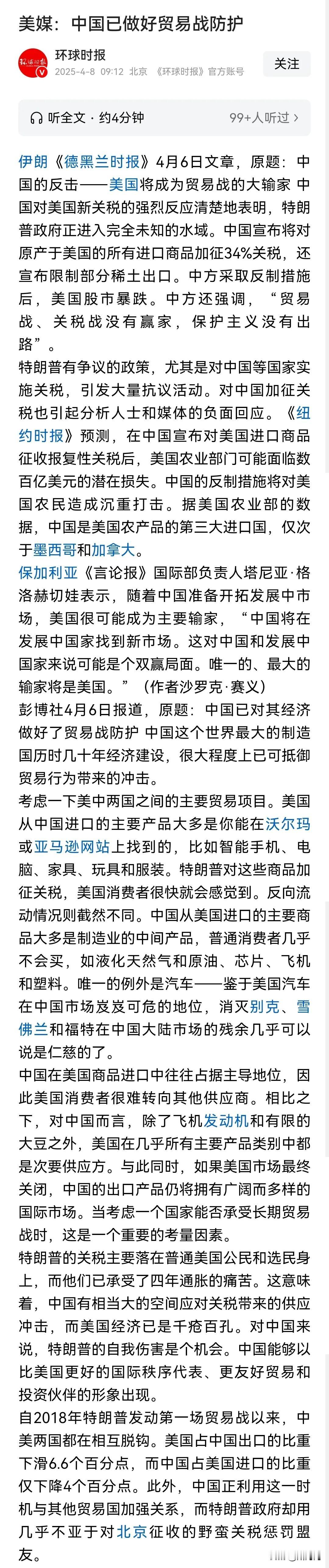 美媒:中国已做好贸易战的防护! 在中国面前,美国没有掀桌子的资本,特朗普更没有主动挑起关税战的资格!在全球第一工业国大国面前,美国只有俯首称臣!(来自环球时报消息)