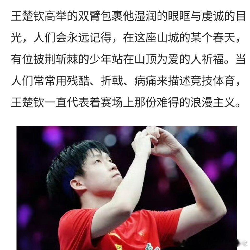 属于王楚钦的浪漫主义“在这座山城的某个春天,有位披荆斩棘的少年站在山顶为爱的人祈