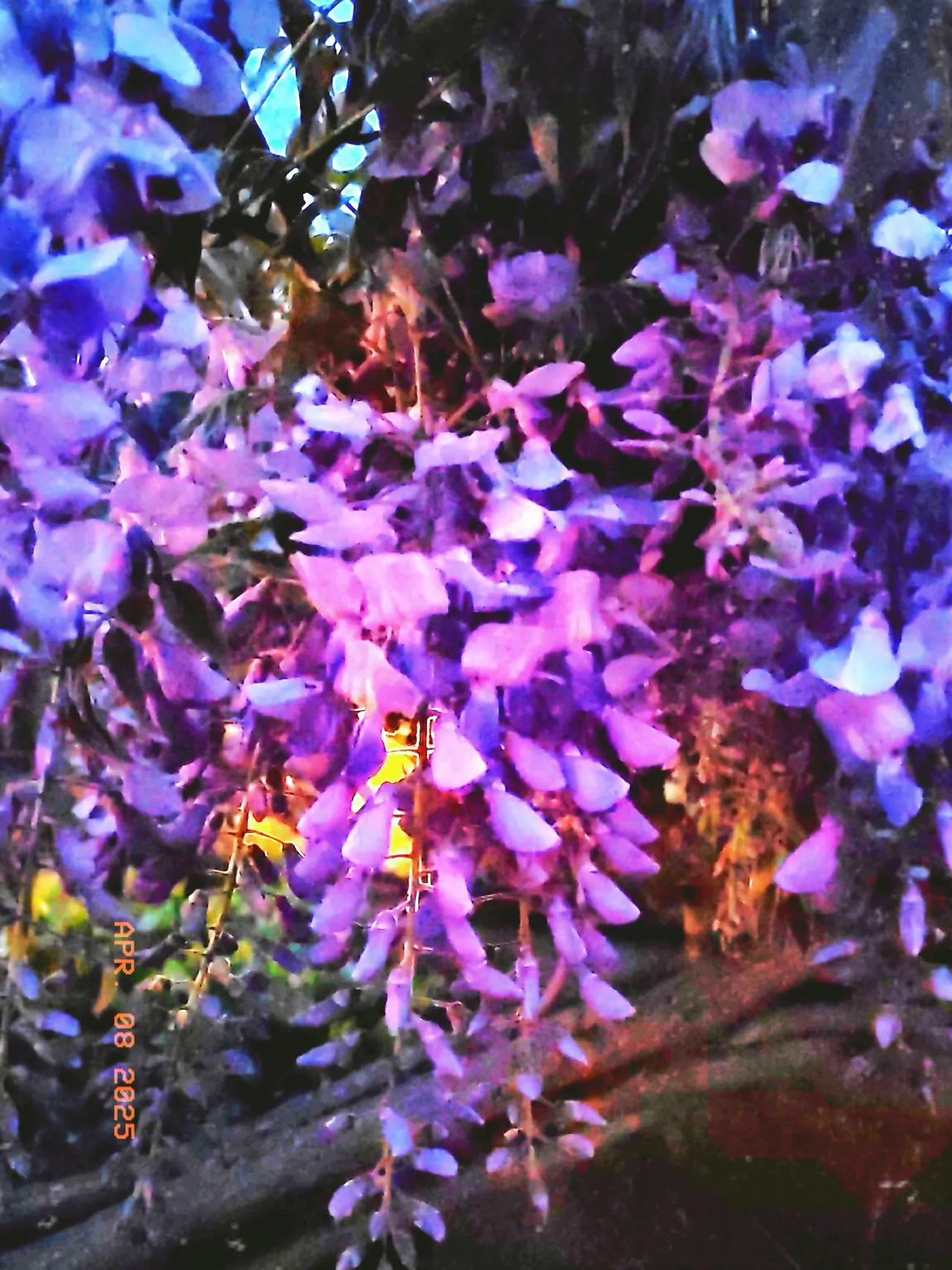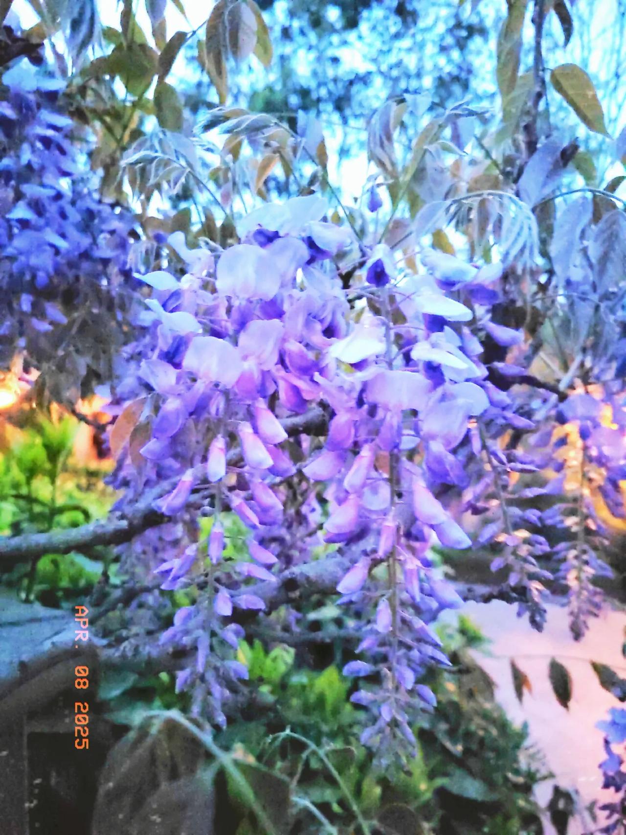 成都的紫藤花开啦今天拍到月亮与紫藤花同框挺好看 成都今天白天的温度挺高 有些夏天的感觉 晚饭后在小区散步时 特意邂逅了那片盛放的紫藤 串串花序垂挂而下 今晚还出了月亮 在月光的轻抚下 紫藤花更像是流淌的紫色星河 花香悠悠萦绕清甜不腻 丝丝缕缕钻进鼻腔 可舒缓着白日的疲惫 这香气可揉进月光里 晕染出月色下 小区里清香宁静的氛围 让人觉得放松舒服 图片原创 手机拍摄于成都温江 与友友分享