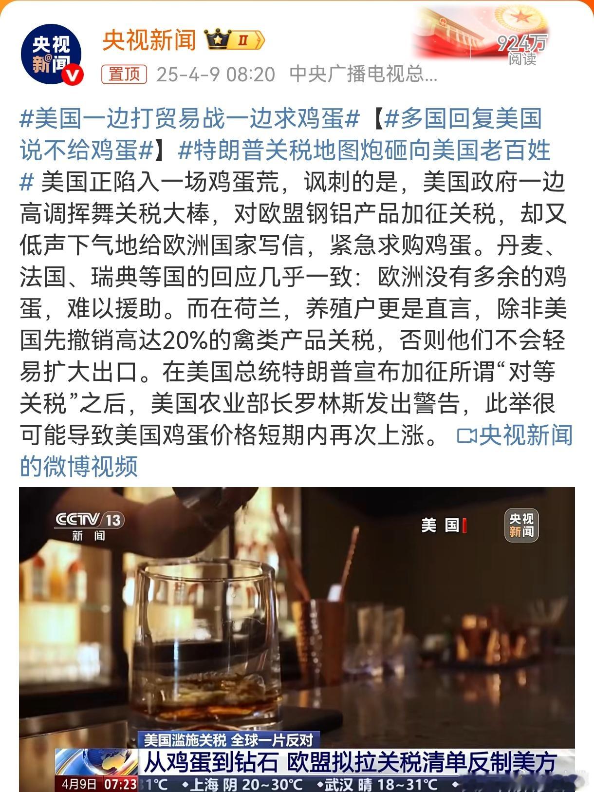 美国一边打贸易战一边求鸡蛋漂亮!全世界都知道你缺鸡蛋了![二哈][二哈][二哈] 美国关税大棒或致国内蛋价再次上涨