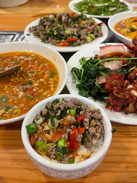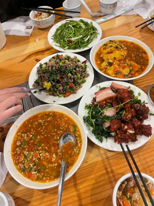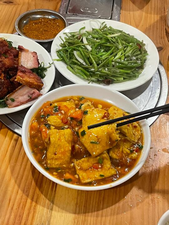 推荐水性杨花、老奶洋芋、蒜苗耗牛肉、炸排骨烤肉双拼 都很适合下饭!符合年轻人口味 ~反而爆浆豆腐我觉得一般!! 还有一个肉沫拌饭的那个菜我忘记叫什么菜名了,也超适合拌饭~(不过我上面的图片有😭)